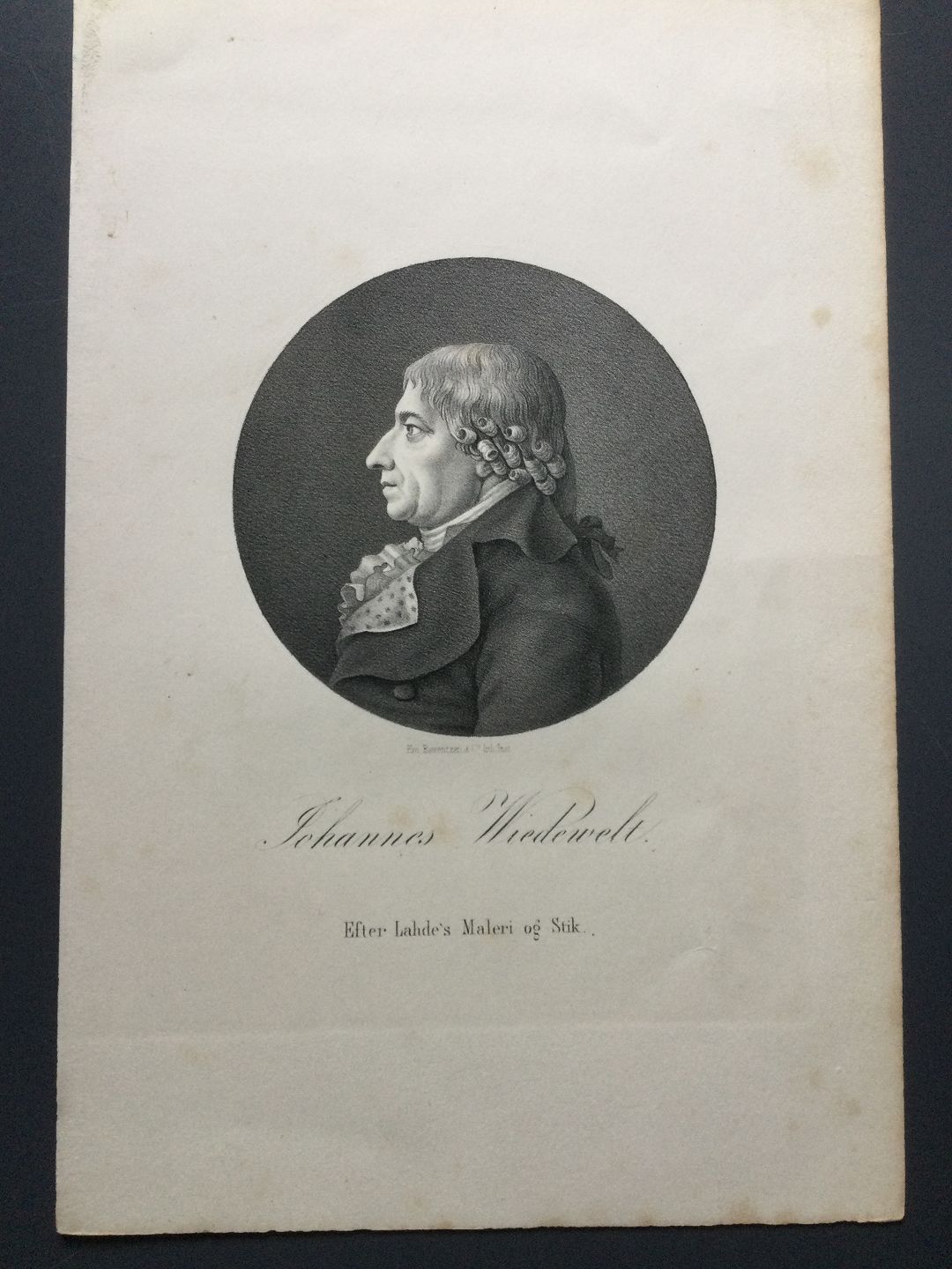 Litografi af Em. Bærentzen - Portræt af Billedhugger Johannes Wiedewelt.