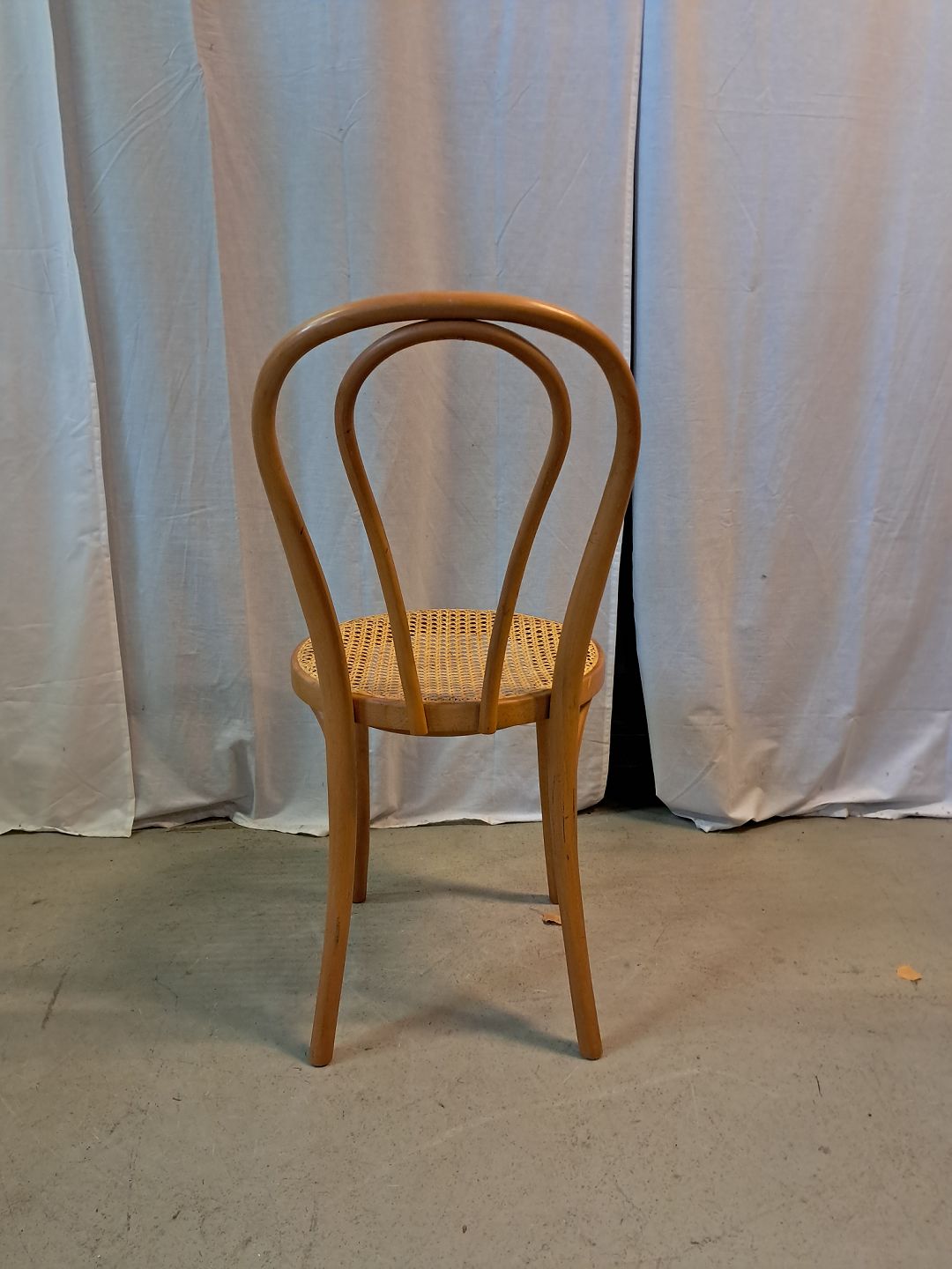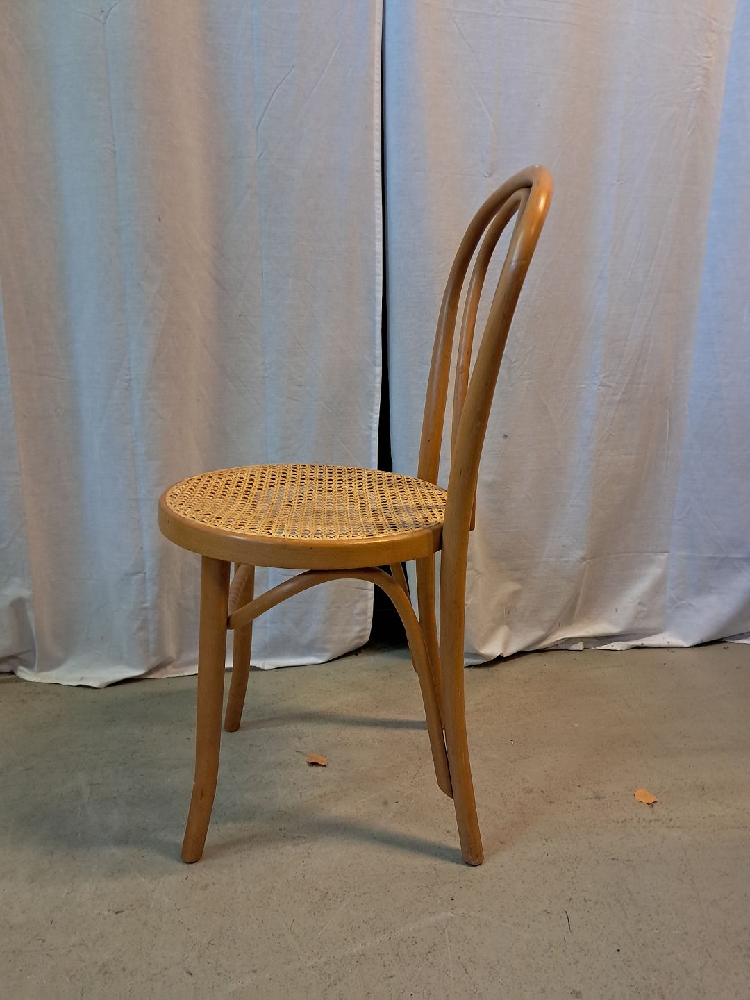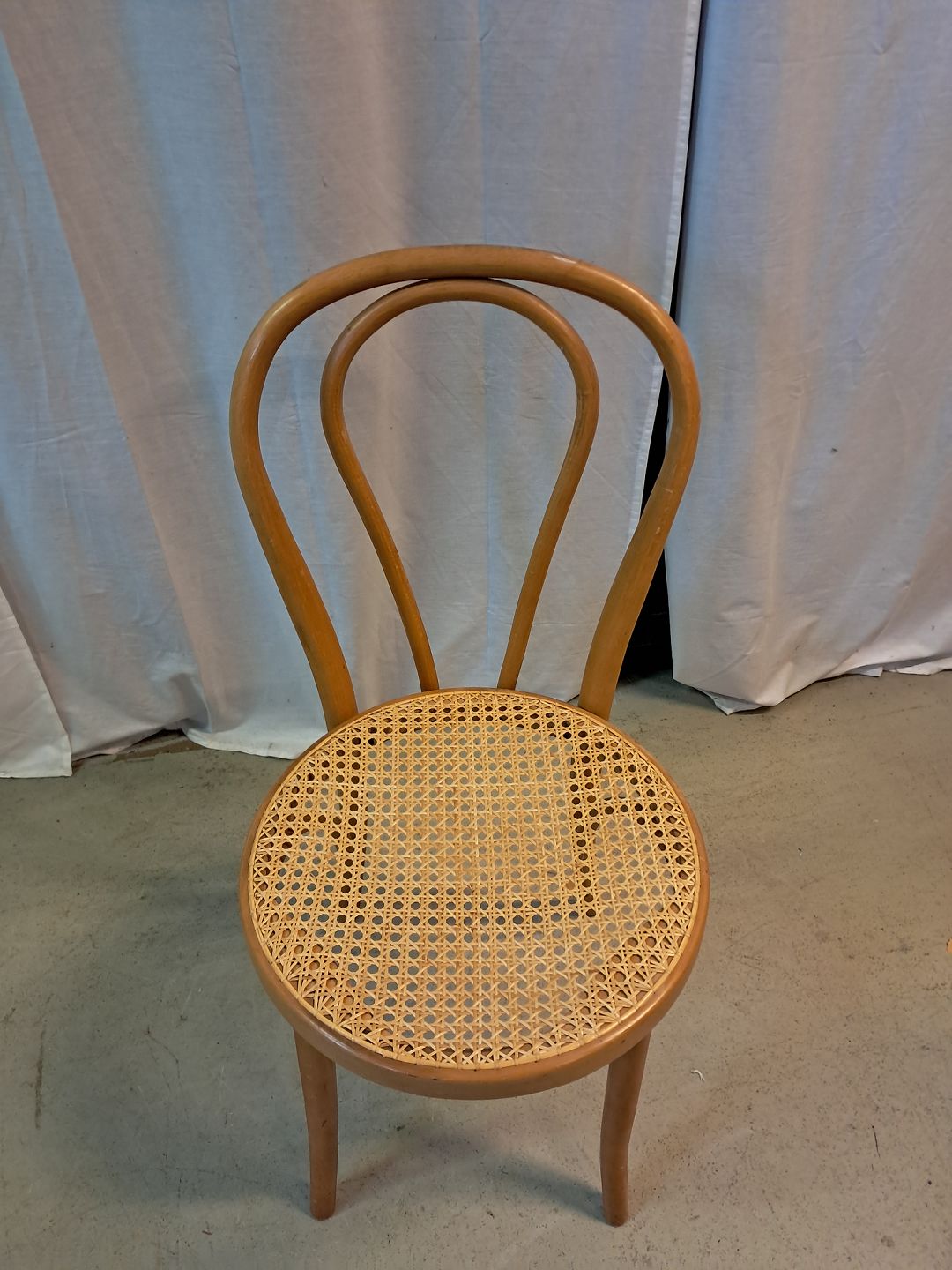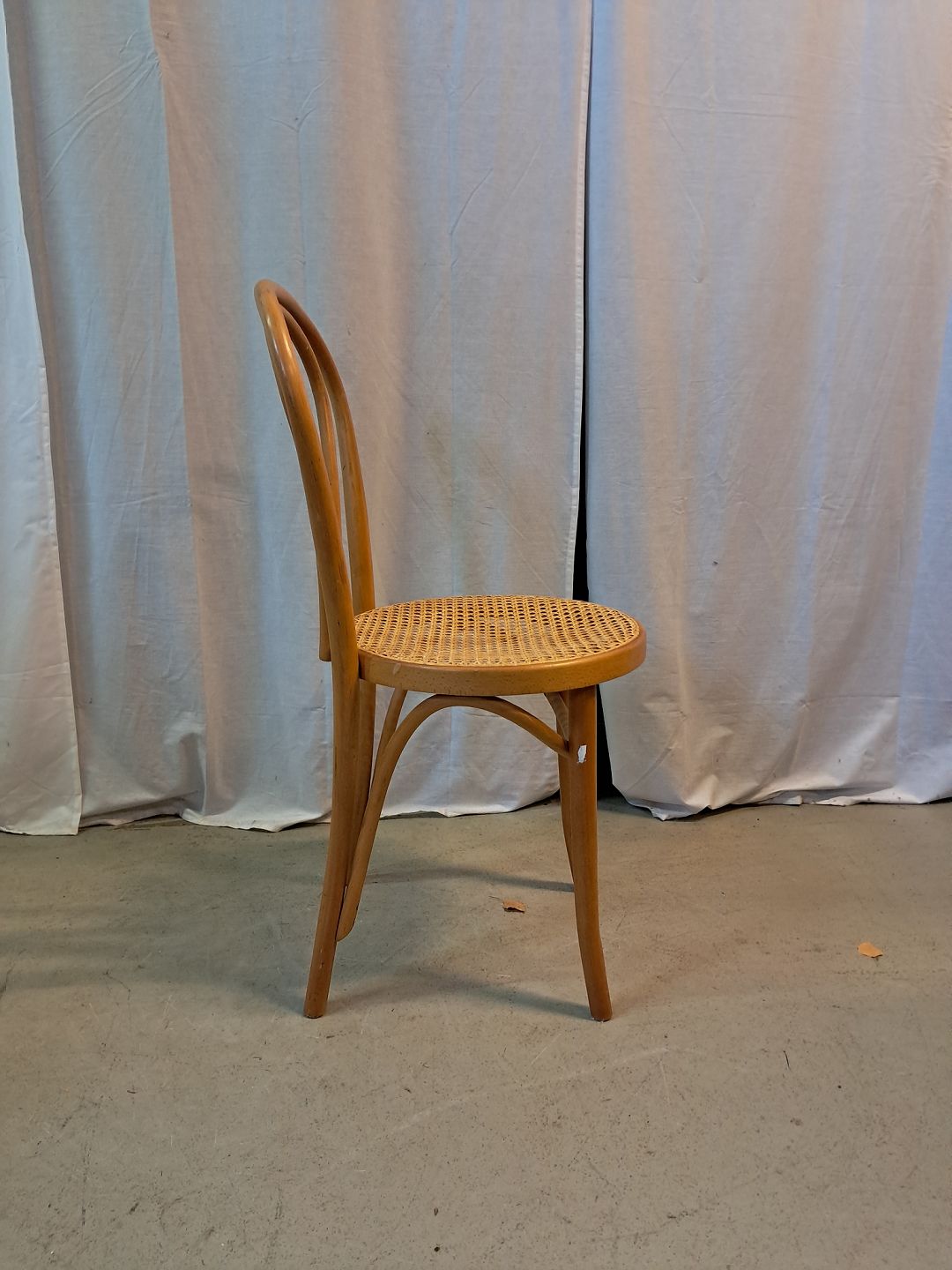 Stol i massivt bøgetræ med sæde i rørflet, fra 1990erne.