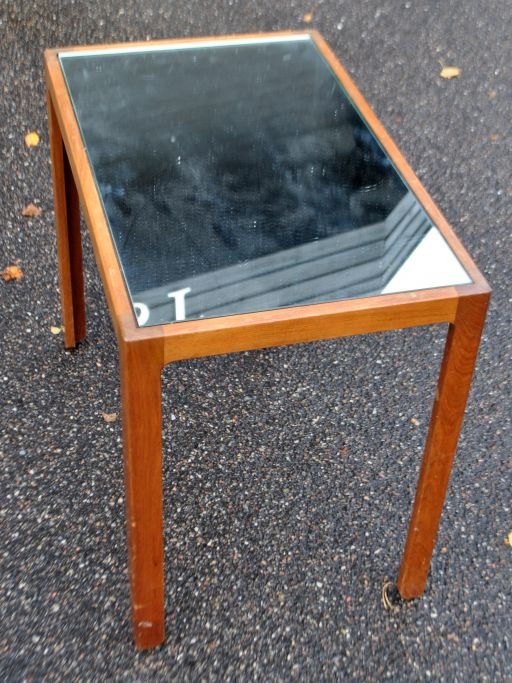 Arkitekt lampebord i mahogni, 20 årh. Danmark. Med nedlagt glasplade. H.: 56 cm. L.: 66 cm. B.: 41 cm.