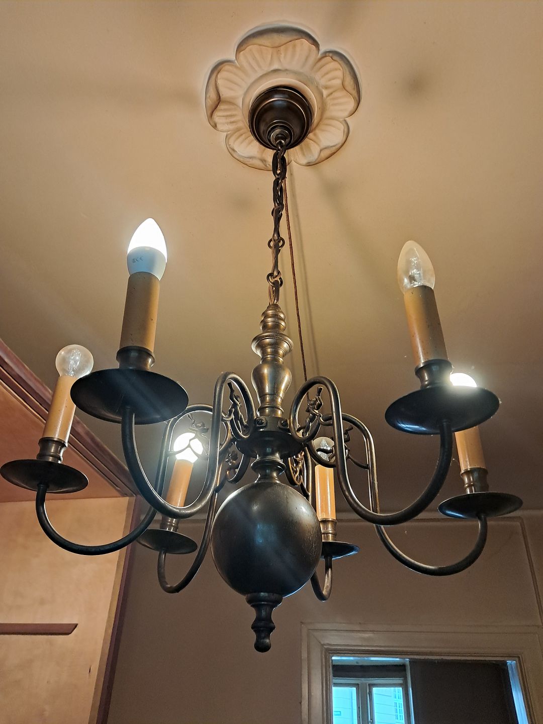 Kirkekrone i bruneret messing, fra 1930erne.