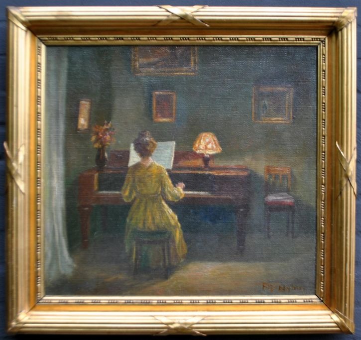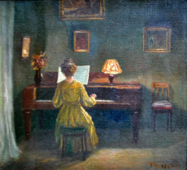 Friis Nybo, Poul (1869 - 1929) Danmark: Klaver spillende kvinde.