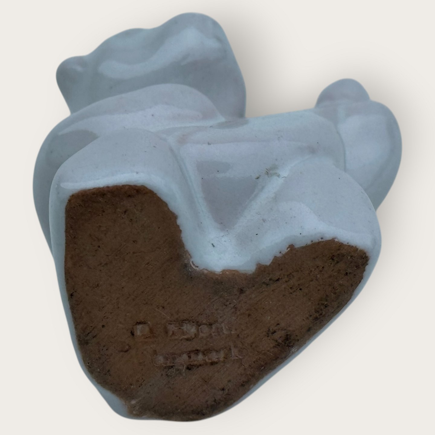 Bornholmsk keramik, Hjorth, Bjørne orkester, guitar / mandolin, bjørn med hvid glasur, ca. 6,5x5cm *Pæn stand*