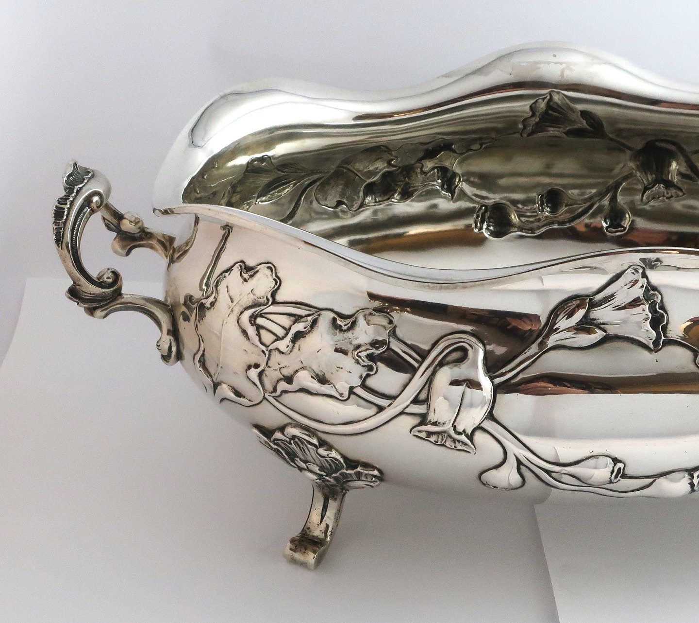 K. C. Hermann, København. (KCH). Stor sølv jardiniere i art nouveau stil (830). Længde 45 cm. Bredde 23,5 cm. Højde 15 cm. Produceret 1907