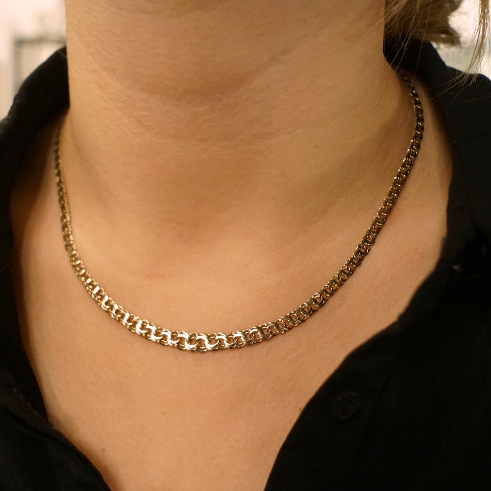 Bismarckhalskæde i forløb, 8 kt. guld. Monteret med kasselås samt to sikkerhedslåse.