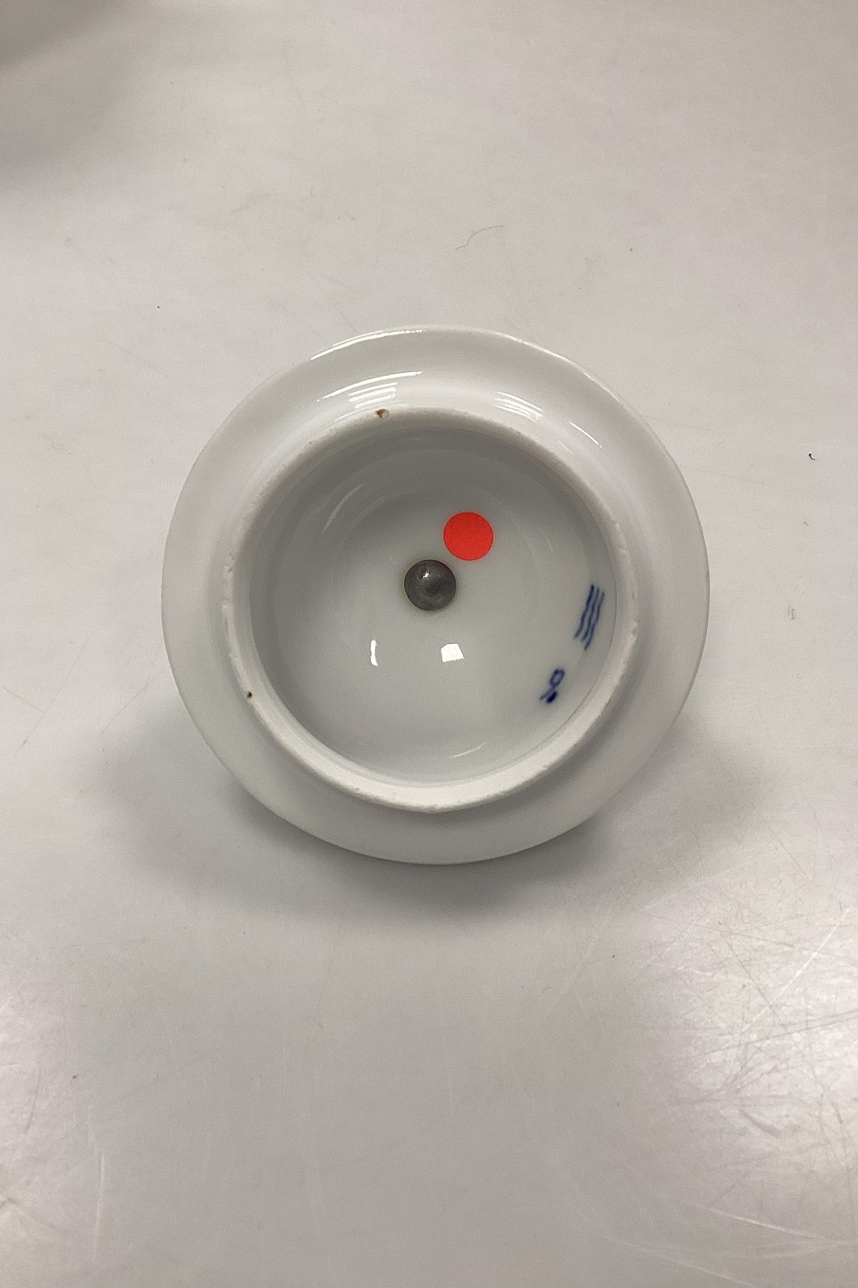 1 Sortering. Har en nedslibning på toppen af låget. Har en reparation i låget (skruet sammen). Har en hårrevne i bunden af kanden