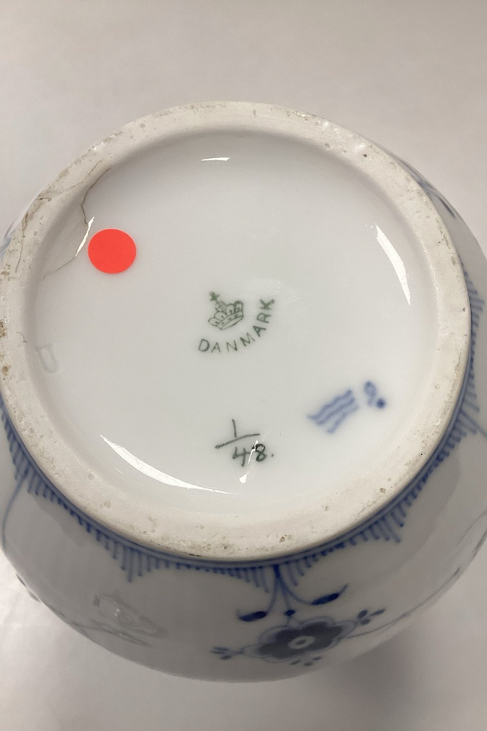 Kgl. Porcelæn Musselmalet Riflet Stor Kaffekande No. 48