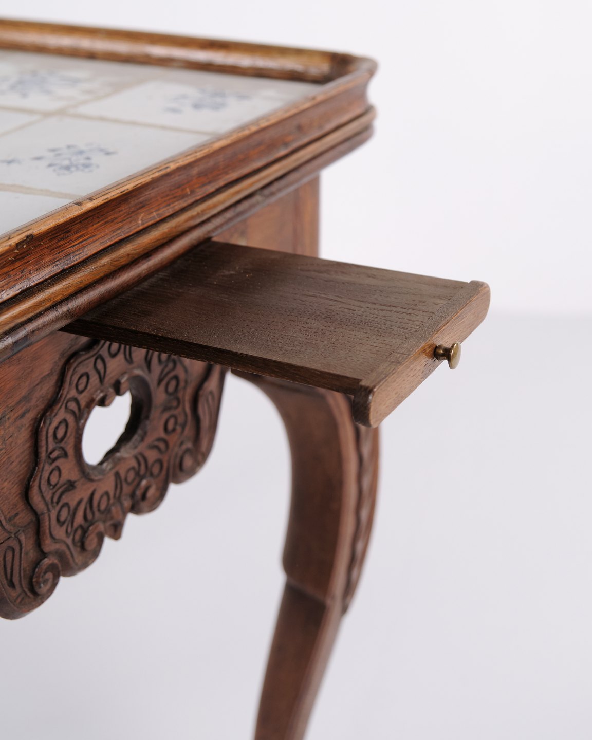 Antikt Flisebord - Patineret Egetræ - Rokoko Stil - Hollandske fliser - 1780