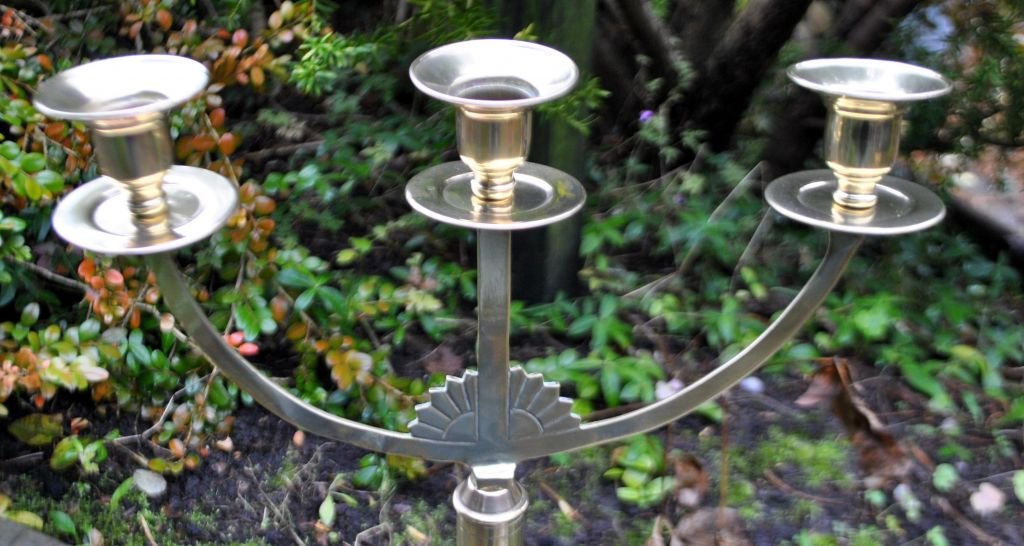 Par danske jugende trearmede lysestager i messing, ca. 1900.
