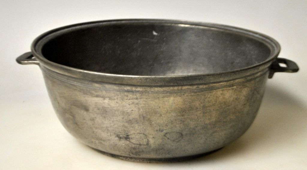 Antik gryde med to hanke i tin, 19. årh.