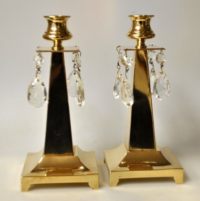 Par danske art deco messingstager med prismer, ca. 1920. Højde.: 21 cm.