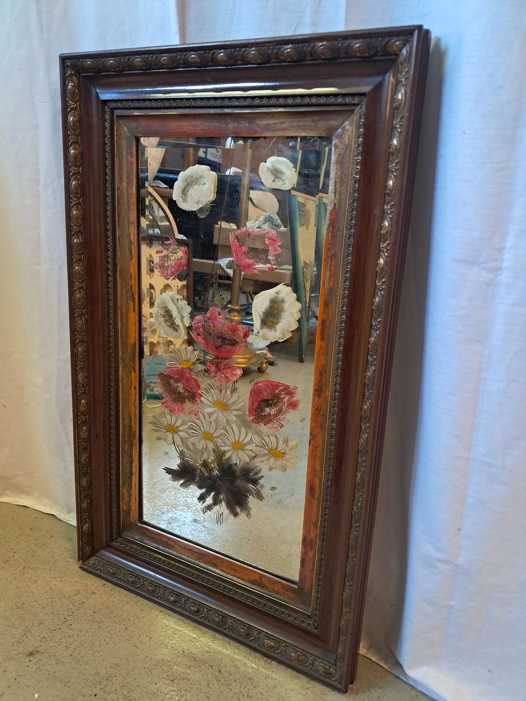 Spejl med påmalet blomster, fra 1920erne.