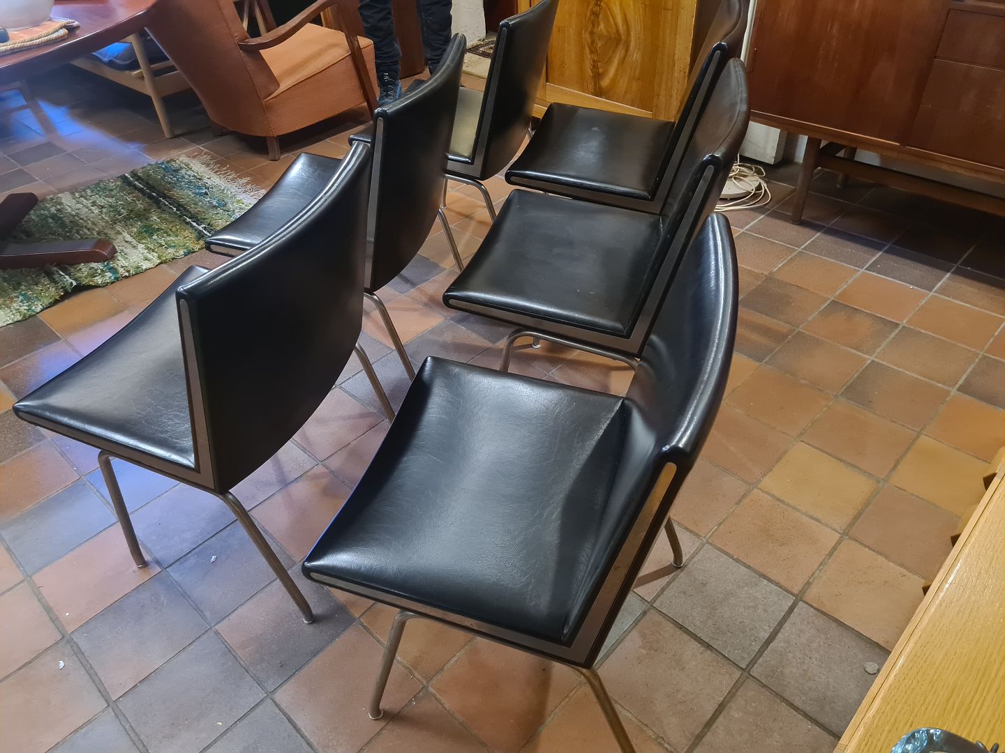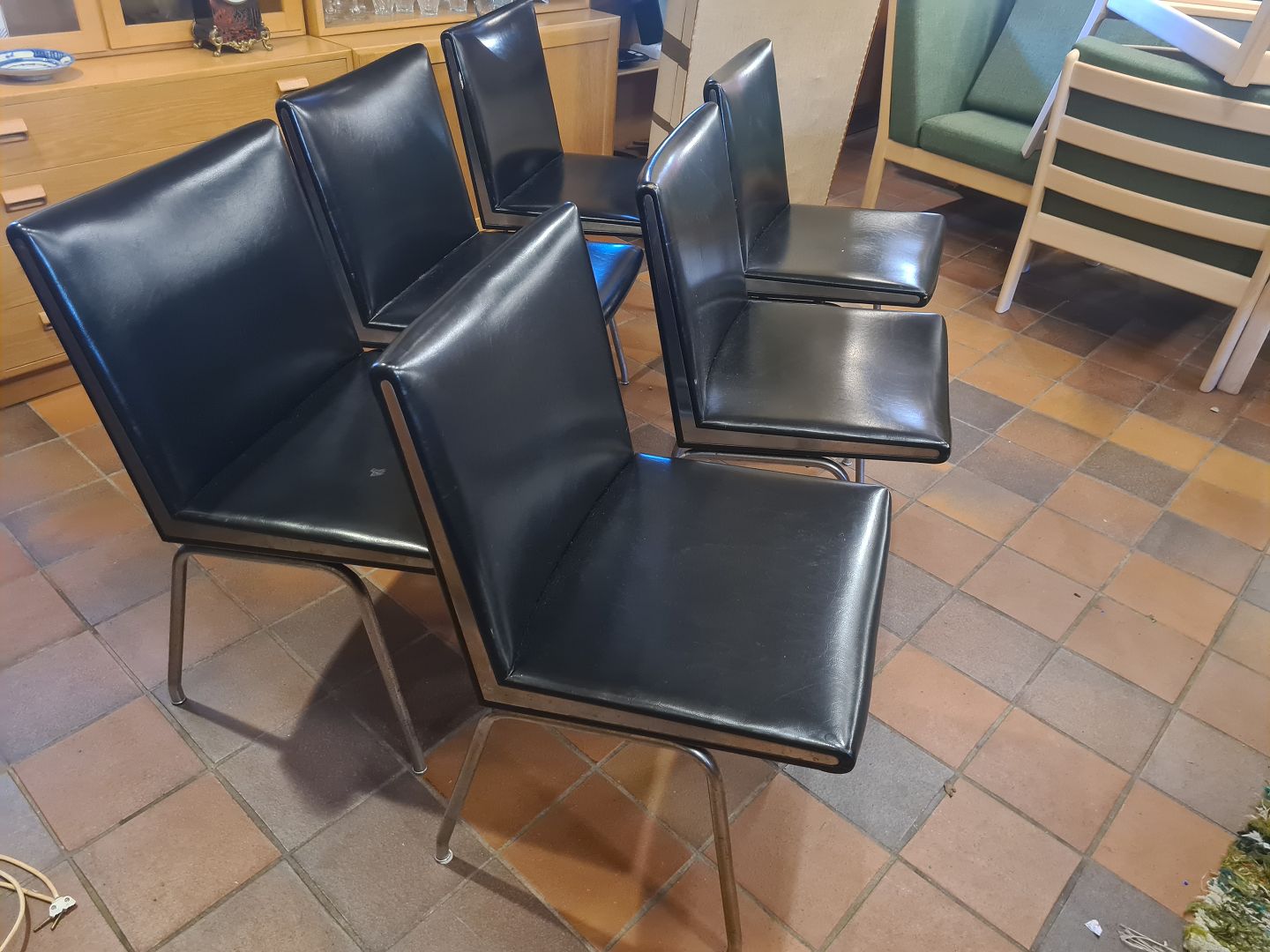 Pæn brugt stand, enkelte stole med mindre huller på kanten af læder. Se foto.