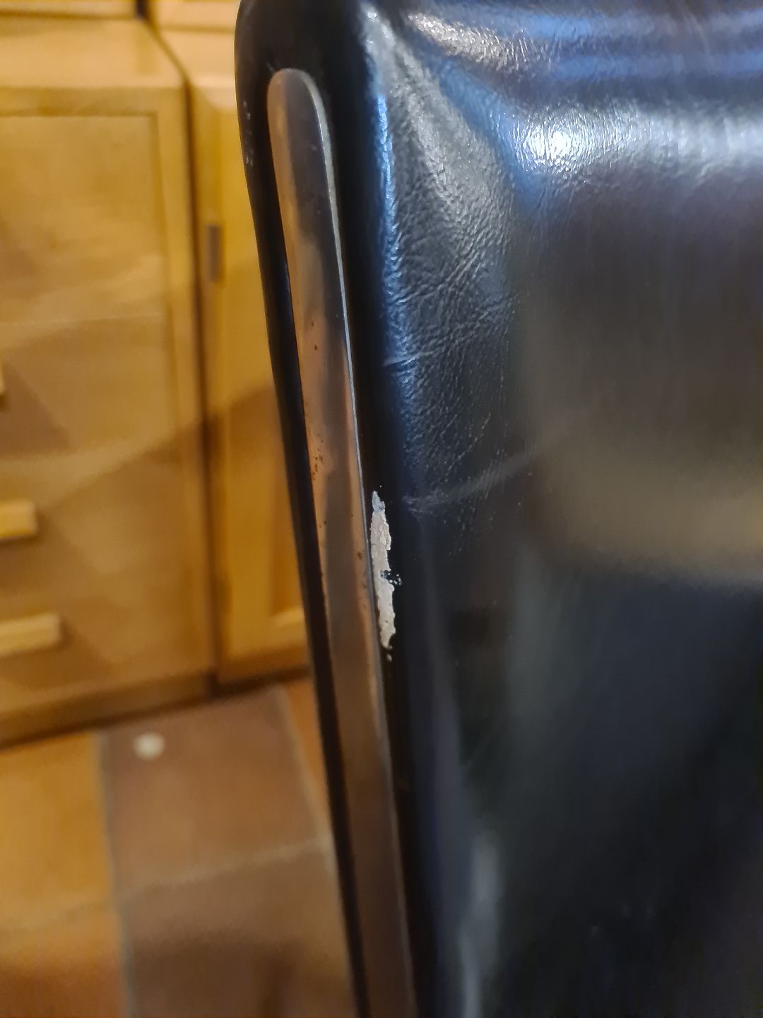 Udført i originalt sort skind samt stel i stål.
