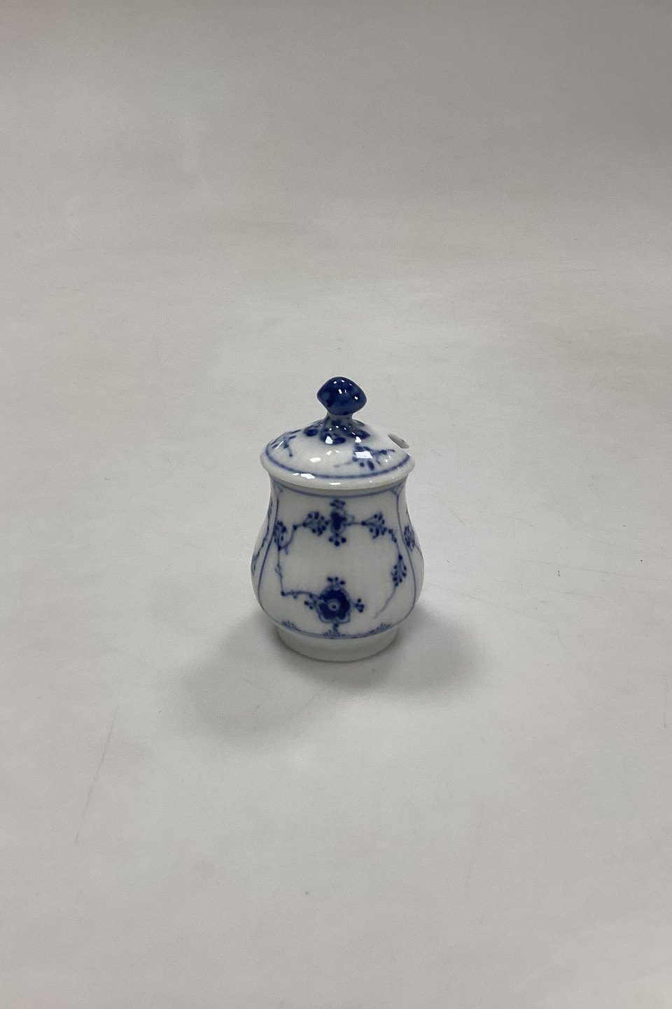 Royal Copenhagen Musselmalet Riflet Lille Sennepskrukke No. 358. Måler 7 cm / 2,75 in. 1. Sortering