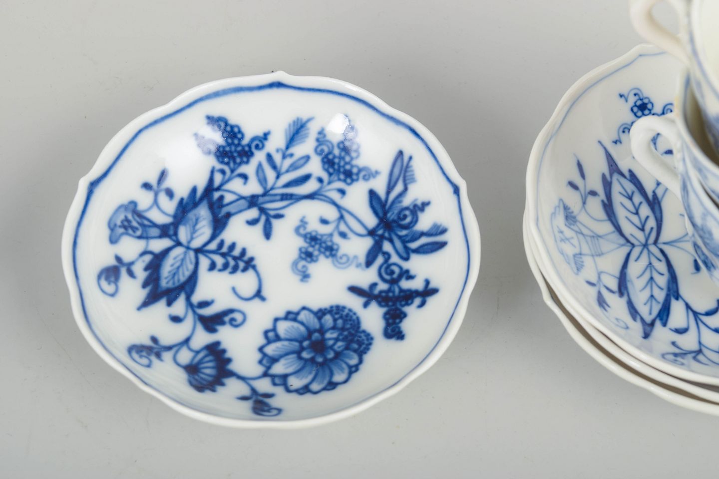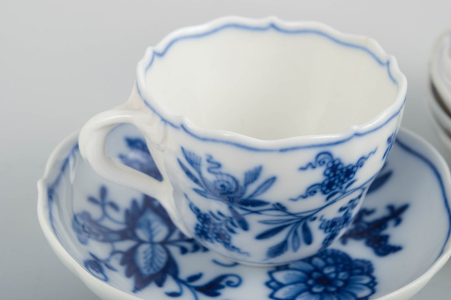 Meissen løgmønstret, fire espressokopper med tilhørende underkopper.