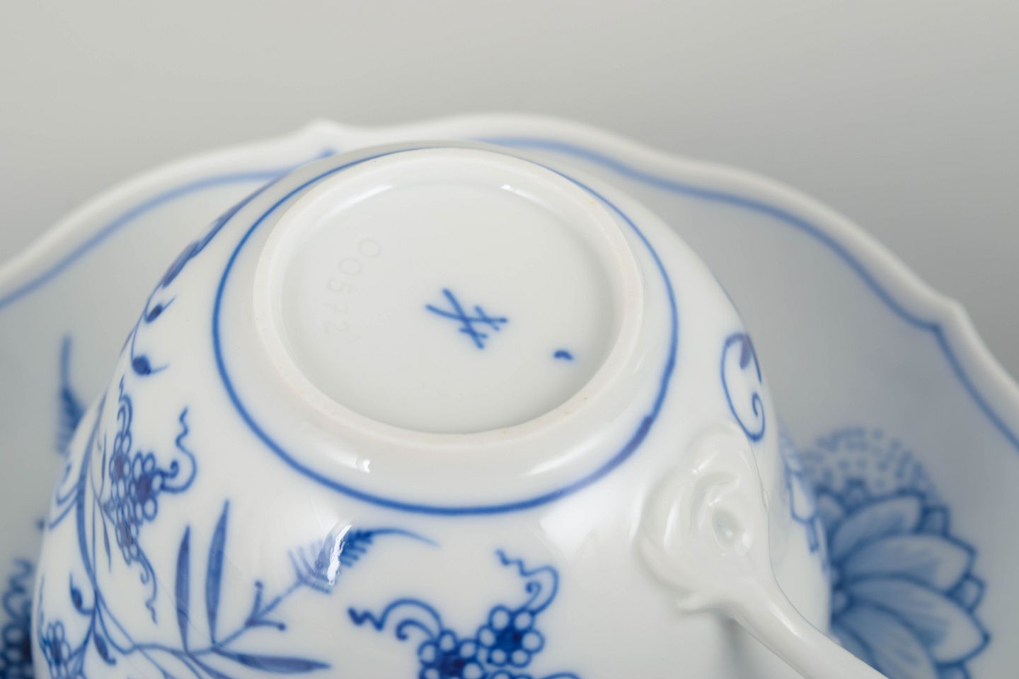 Meissens Zwiebelmuster (løgmønstret) er et af Europas mest ikoniske porcelænsdesigns og har været i kontinuerlig produktion siden 1730’erne. Tidlige 1900-tals eksemplarer er særligt eftertragtede for deres håndmalede detaljer, fine formgivning og høje håndværksmæssige kvalitet.
