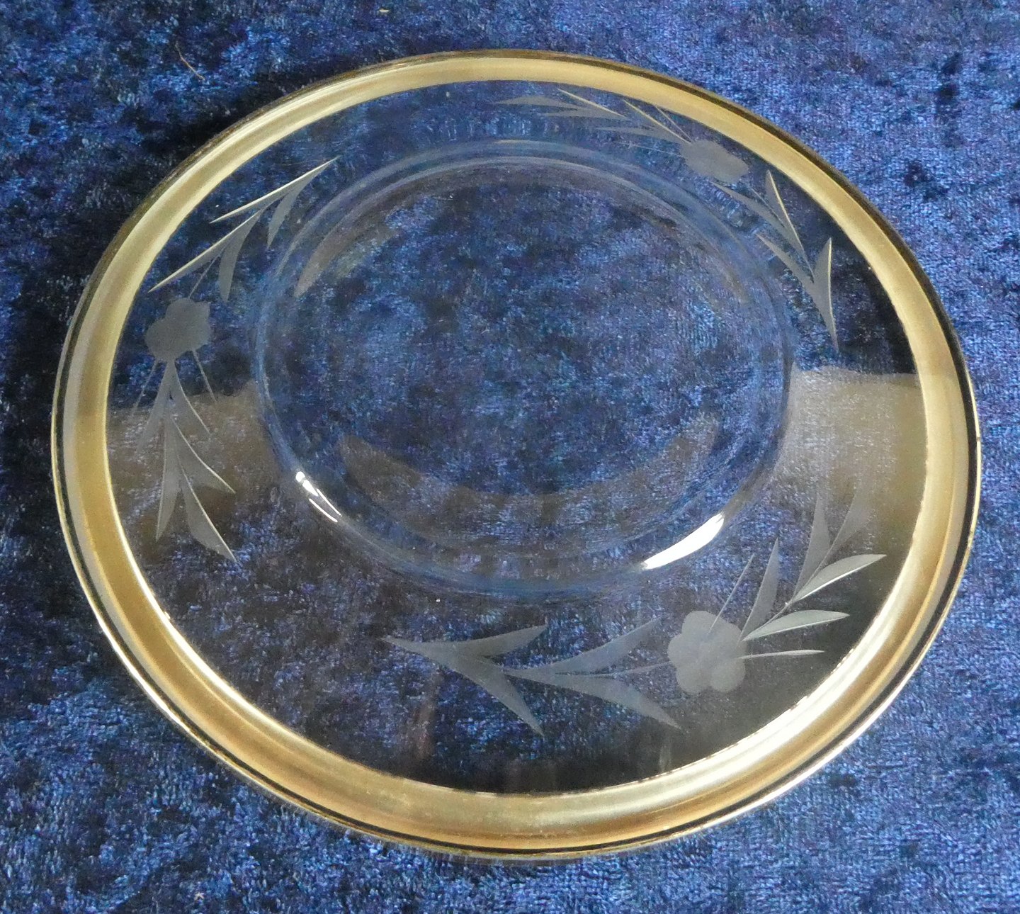 Flaskebakke eller bordskåner af glas med sterling sølvkant.