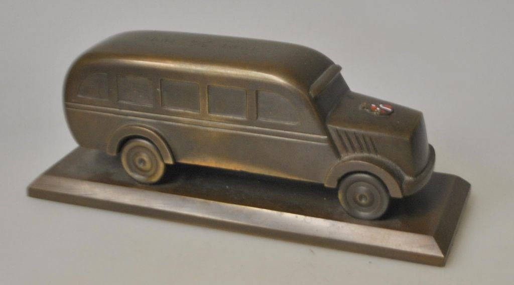 Massiv bronze rutebil, 1946. Med emblem i emelje på front: Danmarks Bilruter (DBR)