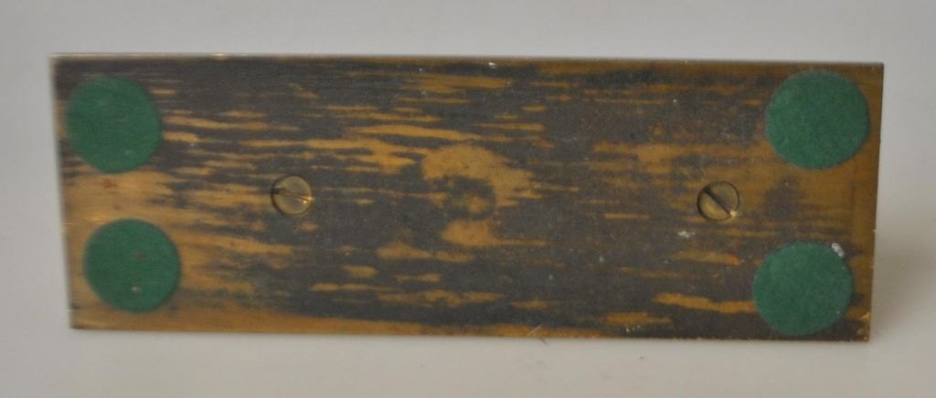 Massiv bronze rutebil, 1946. Med emblem i emajle på front for: Danmarks Bilruter (DBR). L.: 16,6 cm. B.: 5,8 cm. H.: 6,5 cm. På taget indgravering: 1921 - 1/4 - 1946. Vægt: 1.665 gram.