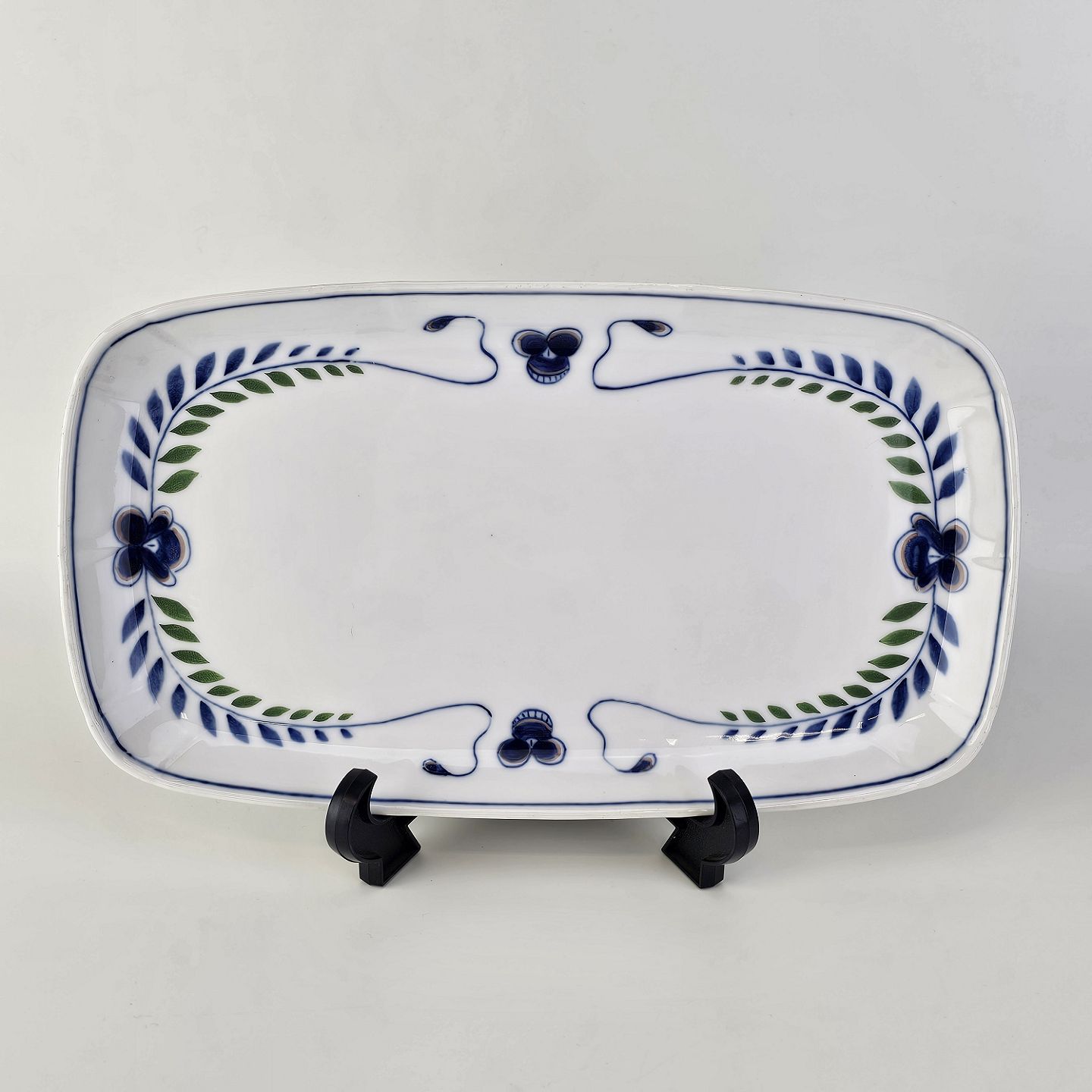 Rektangulært fad i porcelæn fra stellet Blå Vikke