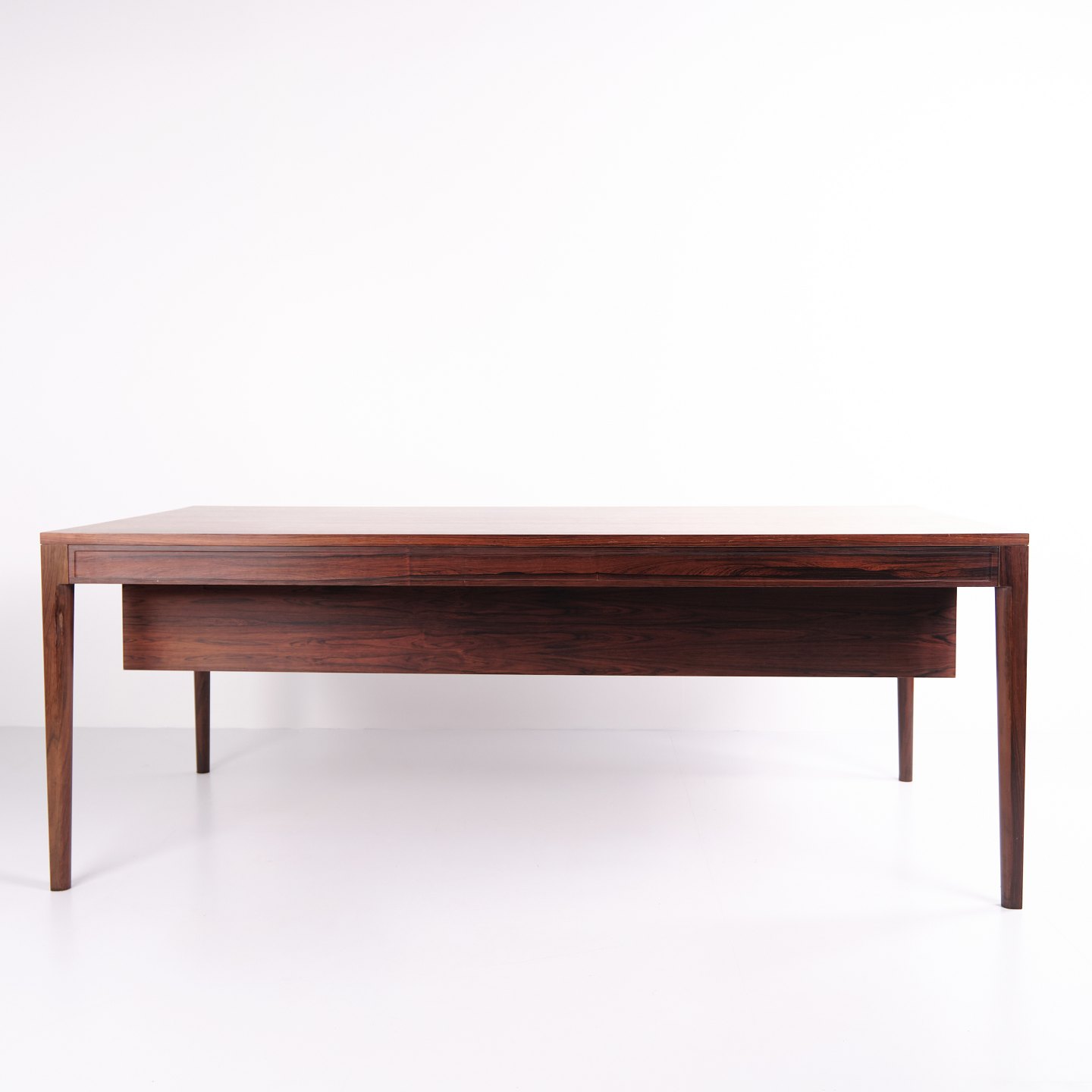 Diplomat skrivebord designet af Finn Juhl for France & Søn omkring 1961. Udført i palisander med rektangulær bordplade og to svævende skuffemoduler. Hvert modul rummer en udtræksskriveplade og to skuffer, alle med børstet stålgreb. Et eftertragtet Finn Juhl design med markant formsprog og eksklusive materialer.