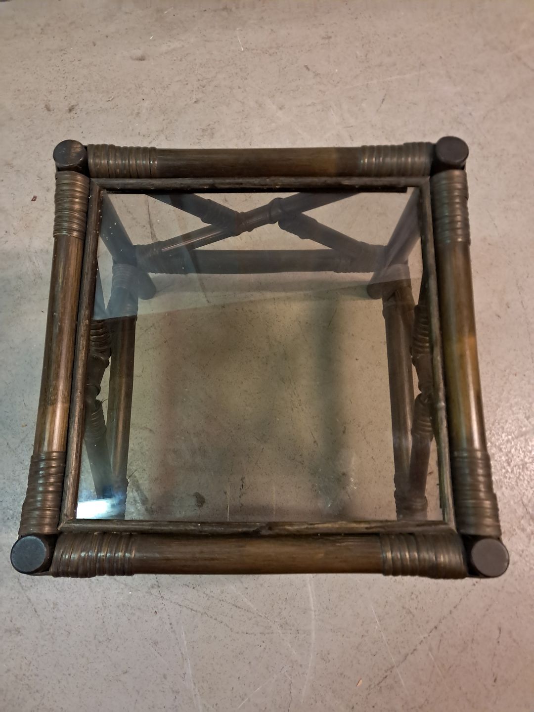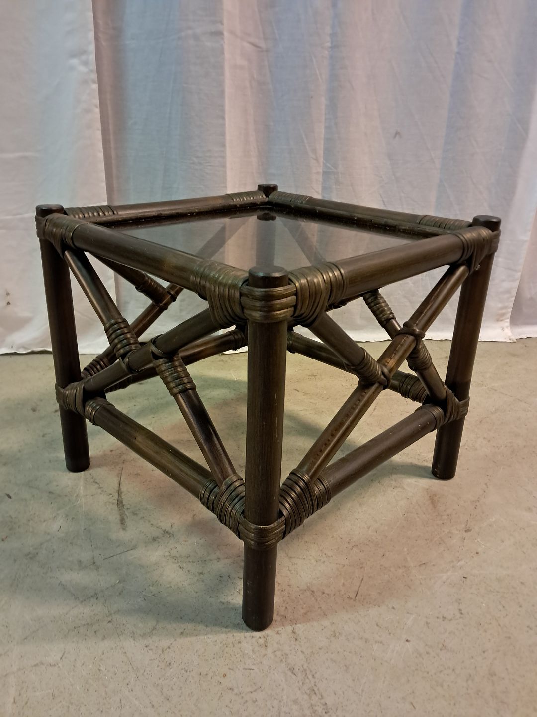 Lille bord i bambus med glasplade, fra 2000erne.