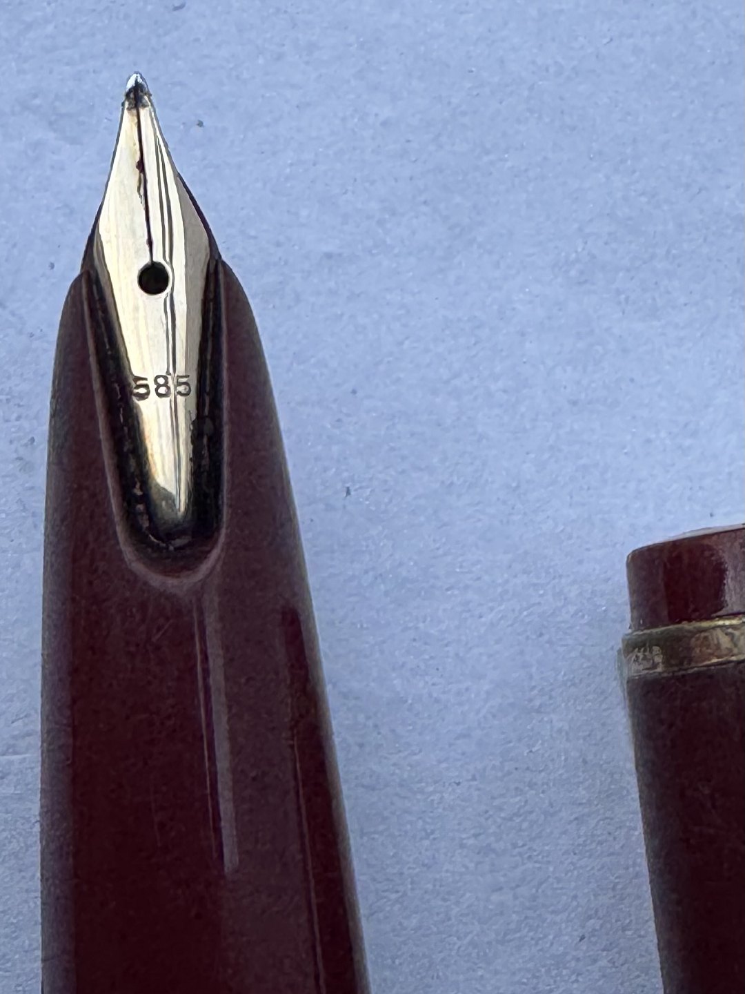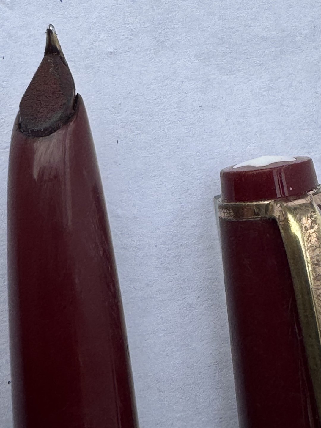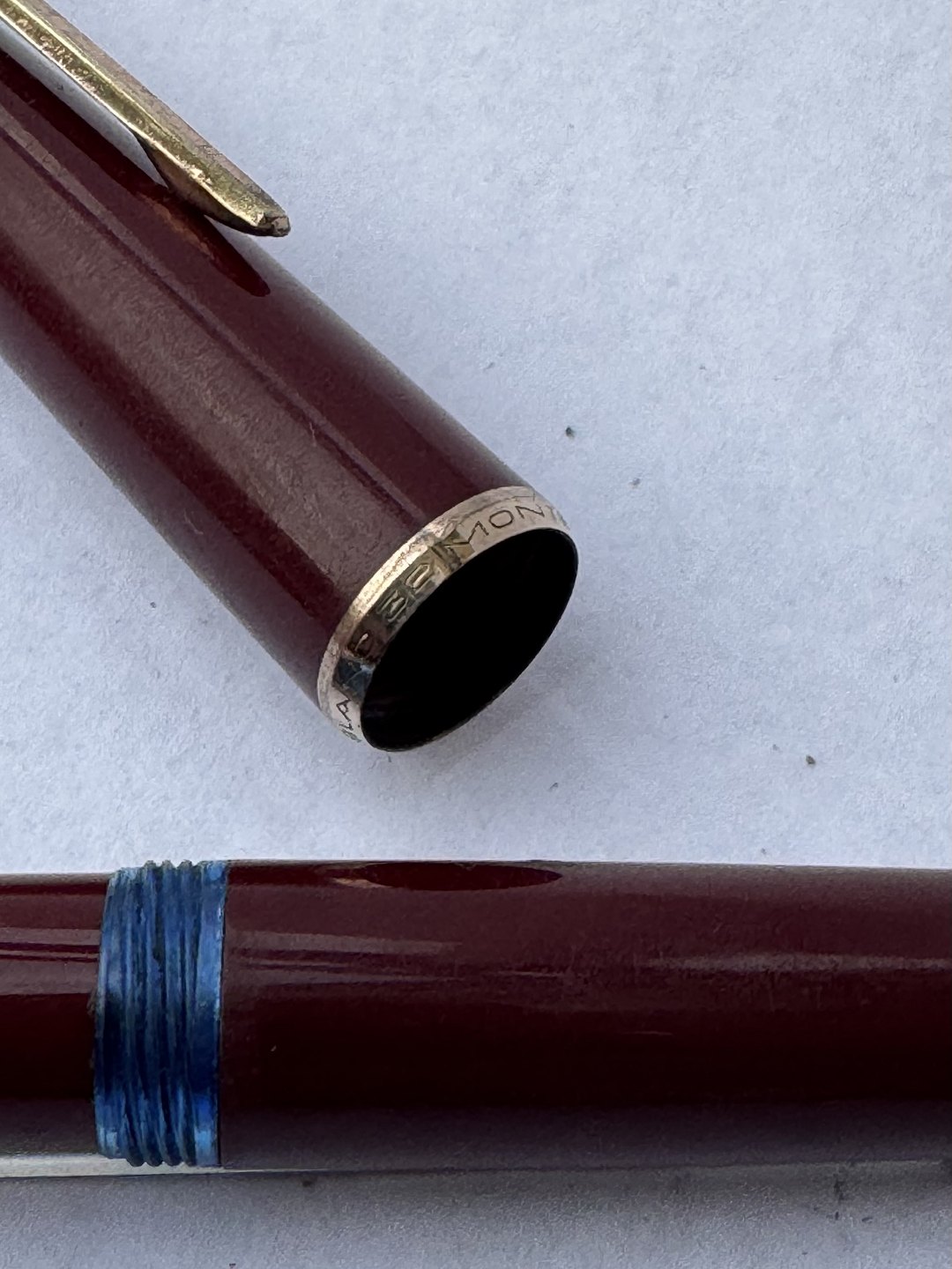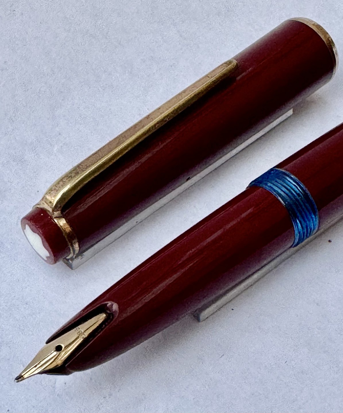 Bordeaux Montblanc 32 fyldepen. Fremstillet i Tyskland i 1970’erne. Påfyldning af blæk med piston filler. I god stand uden skader eller reparationer. L. 12,8 cm