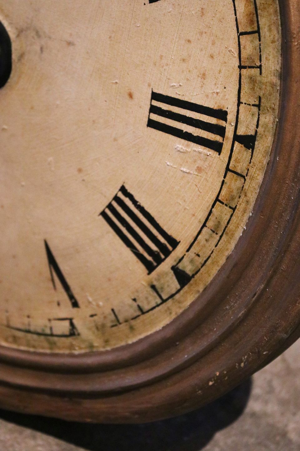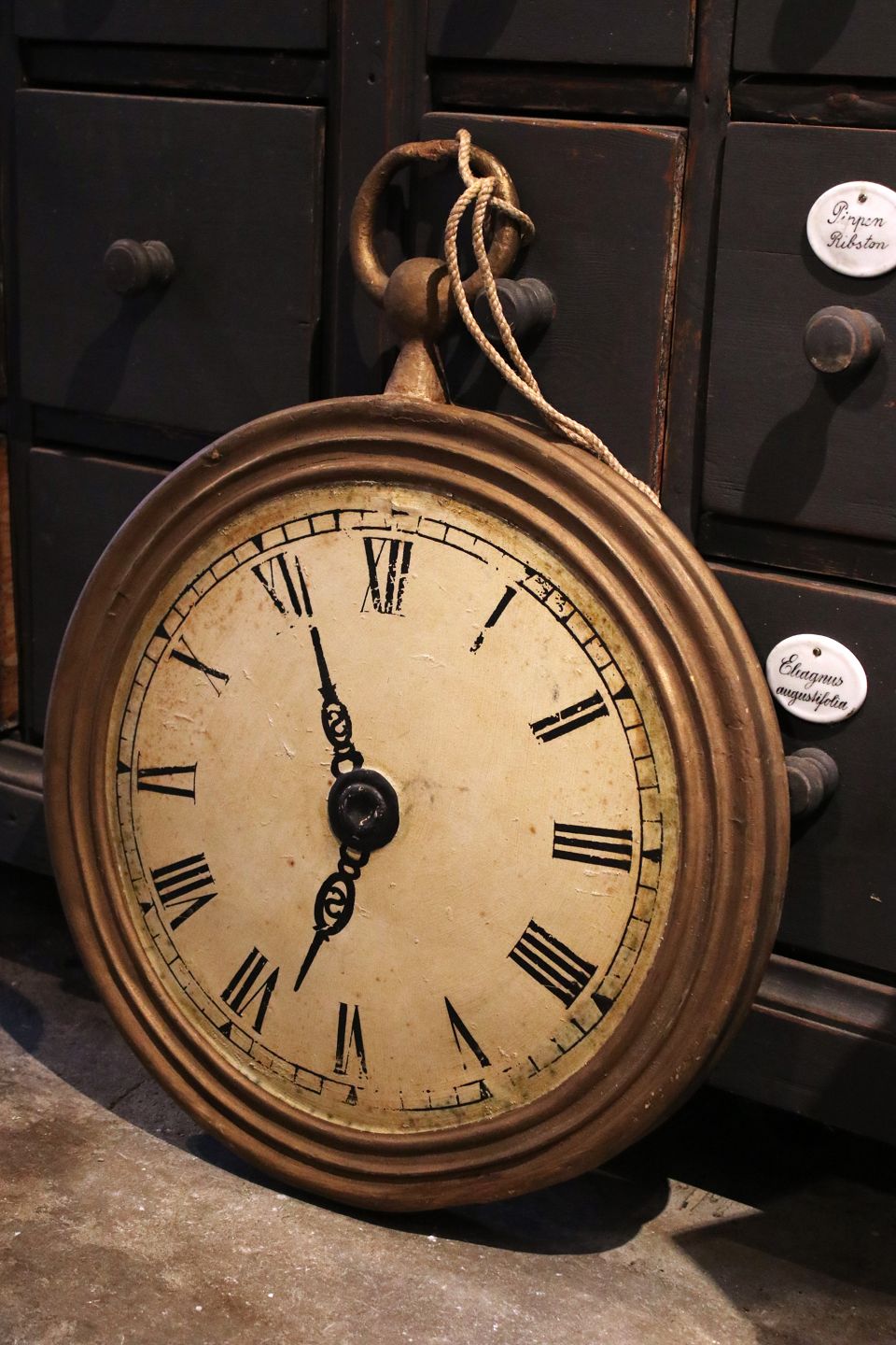 Dekorativt gammelt "ur" i træ fra urmager butik med gammel bemaling og med en rigtig fin patina...