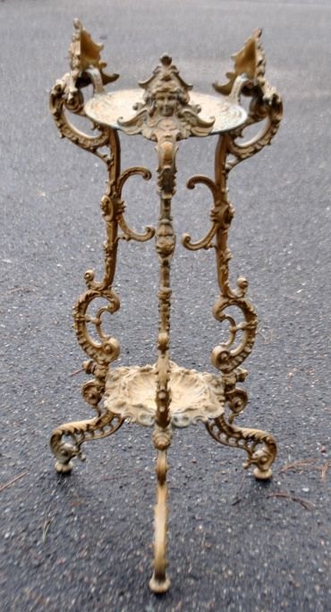Eiserner Sockel, um 1870, Dänemark. Auf drei Beinen, verziert mit Engeln und Delfinen. Höhe: 75 cm.