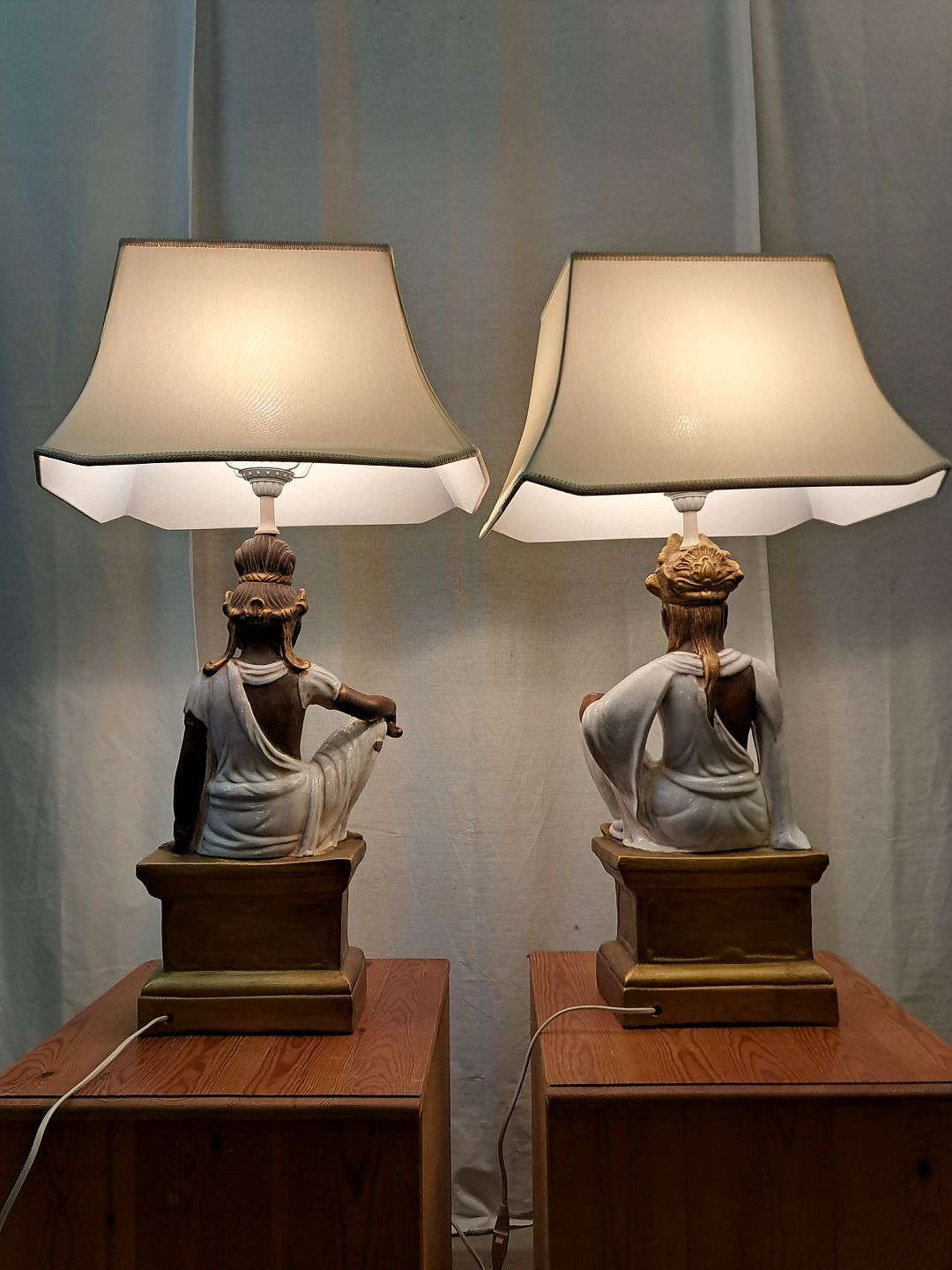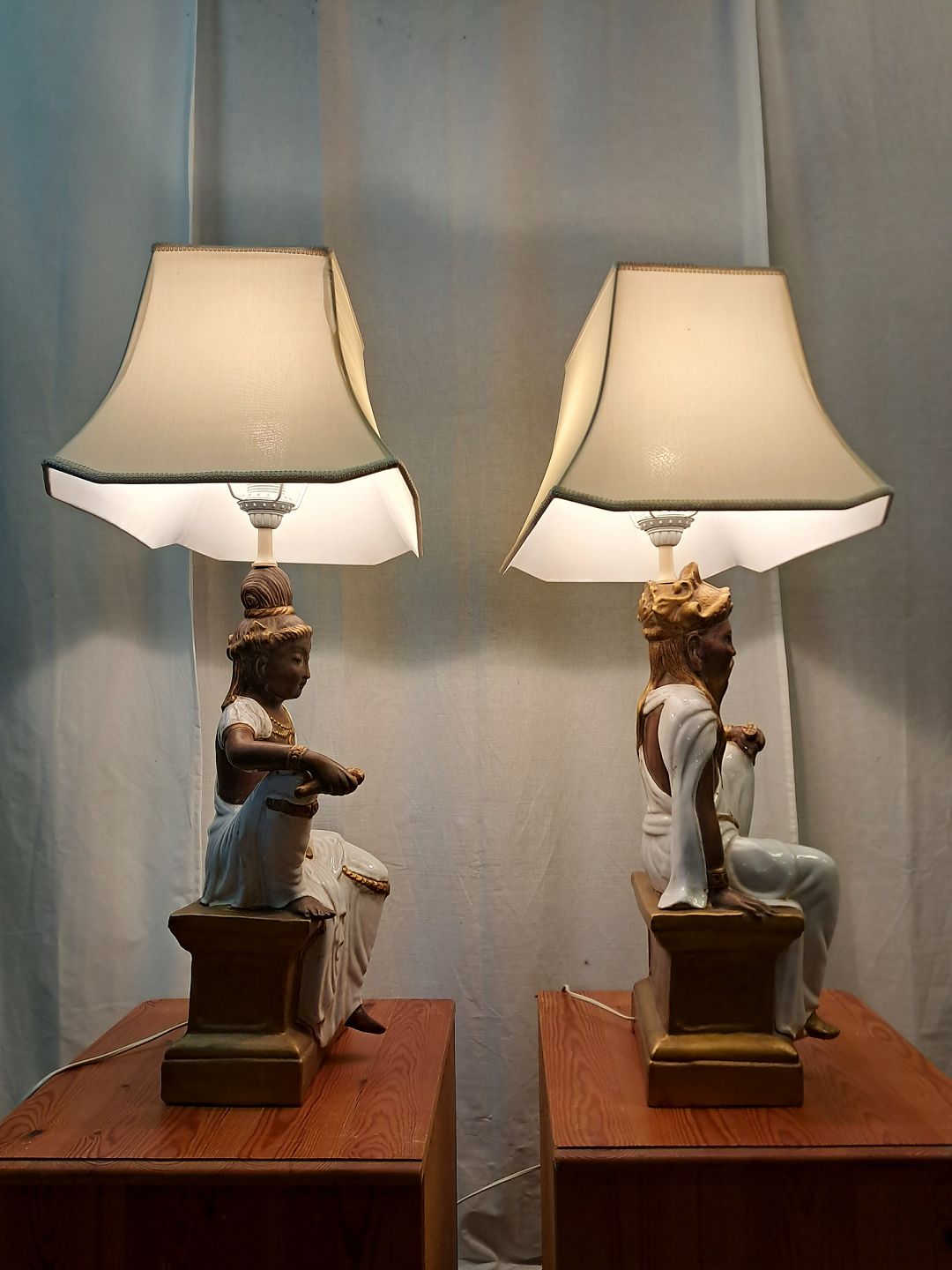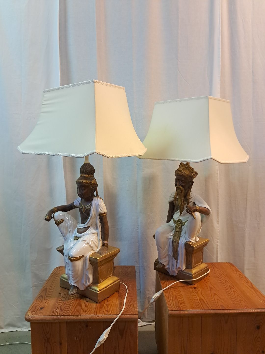 2 Bordlamper i pocelæn med skærme, fra 2000erne.