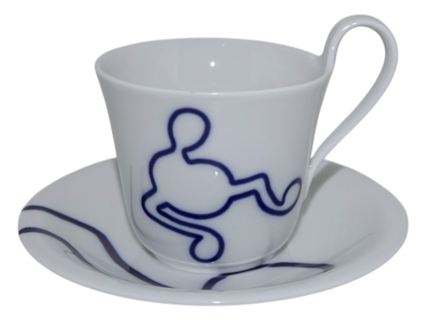 Royal Copenhagen Musica, højhankskop med tilhørende underkop. Dekoration F.