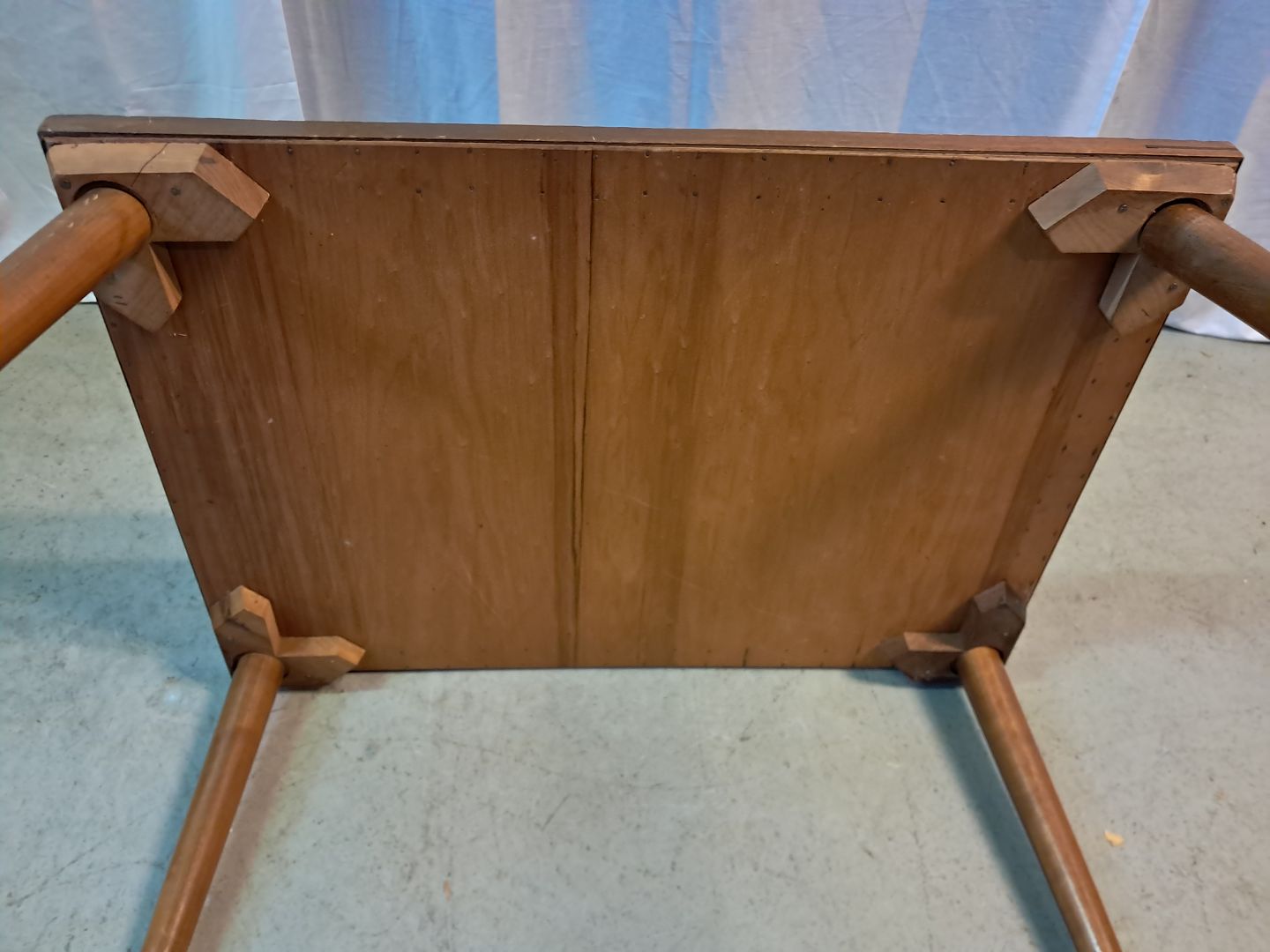 Sofabord i massivt bøgetræ med glasplade og sommerfuglevinger, fra 1980erne.