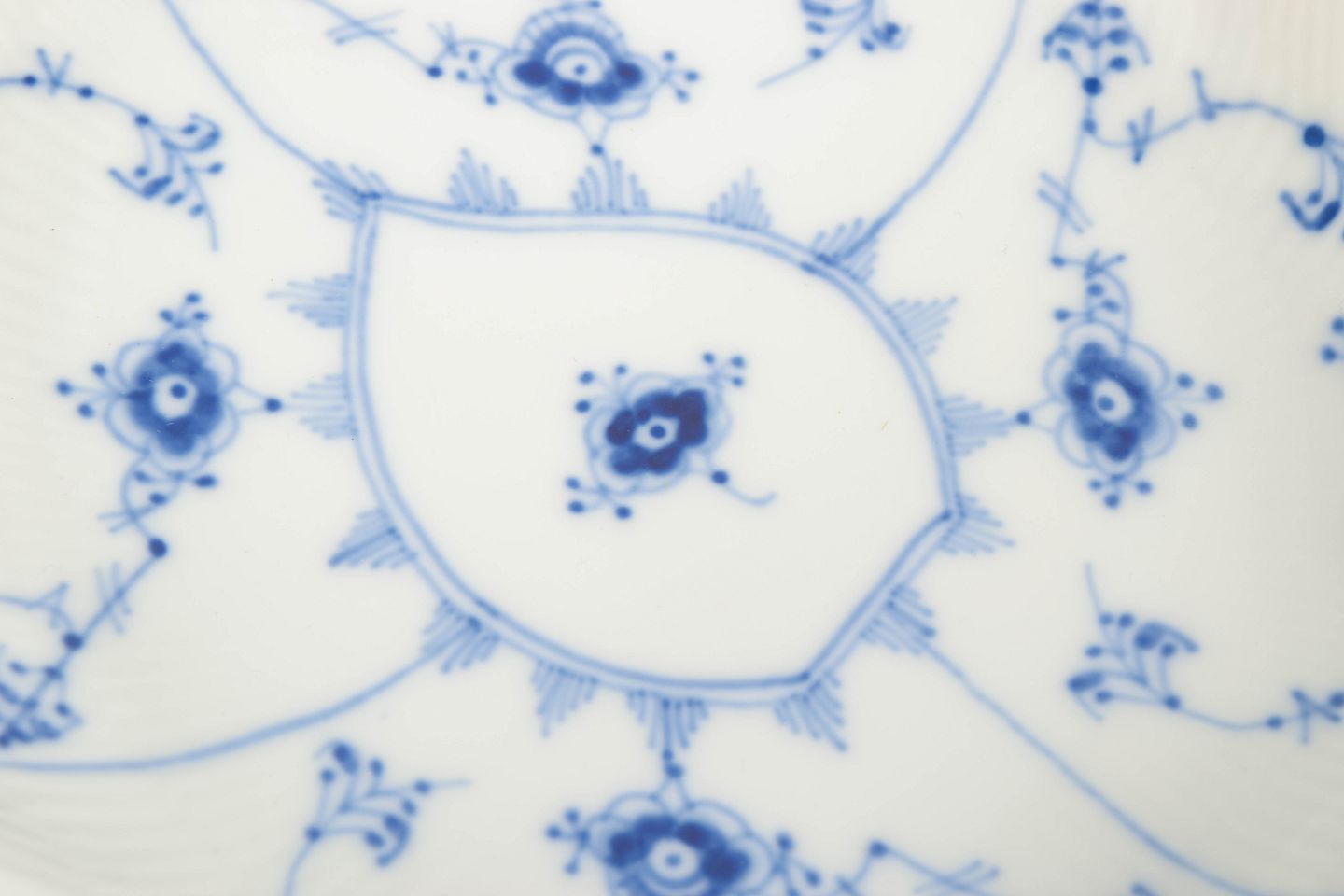 Royal Copenhagen Musselmalet Riflet fad med hank, 1966.