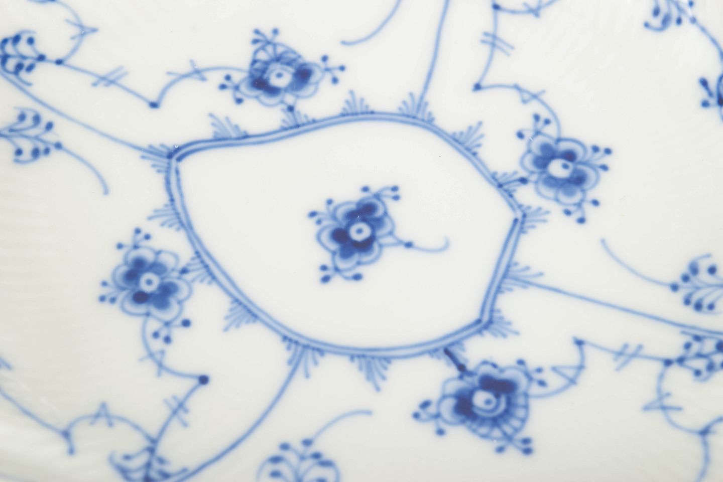 Royal Copenhagen Musselmalet Riflet fad med hank, 1966.