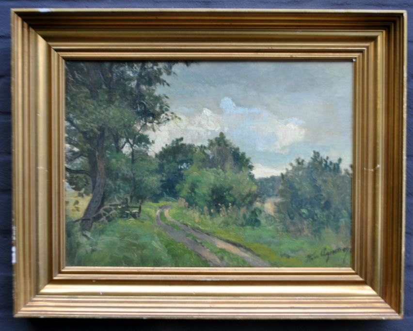 Agersnap, Hans (1857 - 1925) Danmark: En vej - sommer. Olie på lærred. Signeret. 36 x 53 cm.