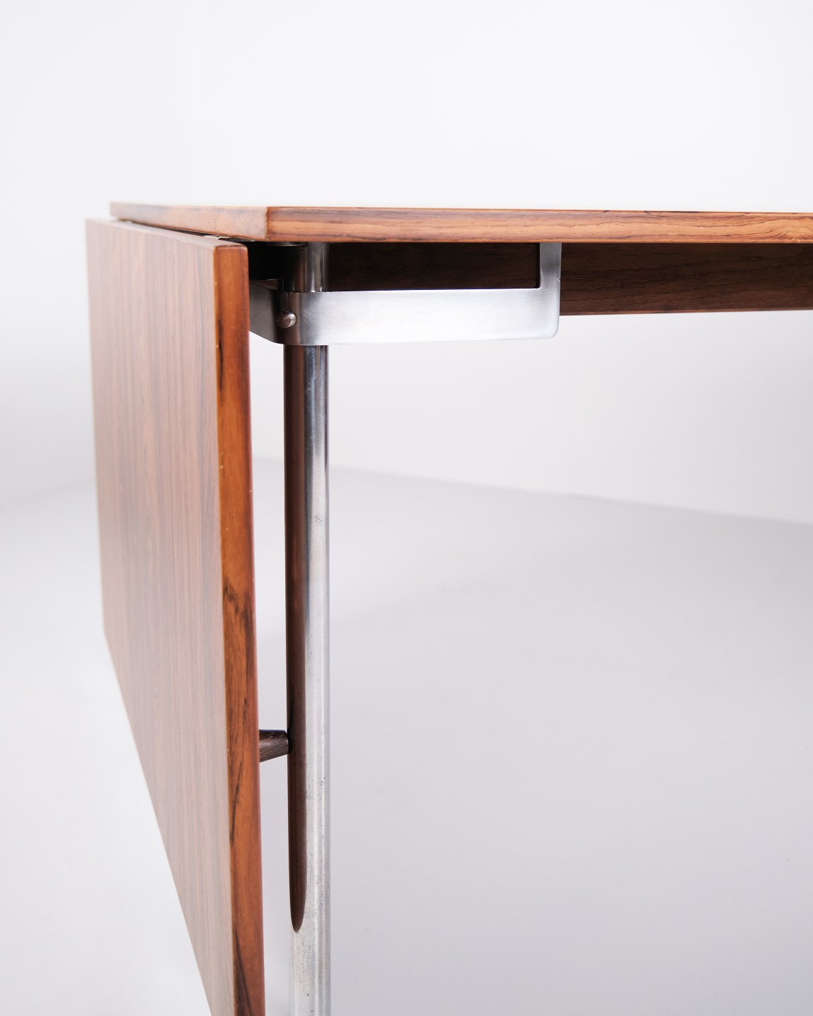 Spisebord model AT 319 af Hans J. Wegner for Andreas Tuck. Riopalisander med stålben og 2 tillægsplader. Dansk design fra 1960’erne.