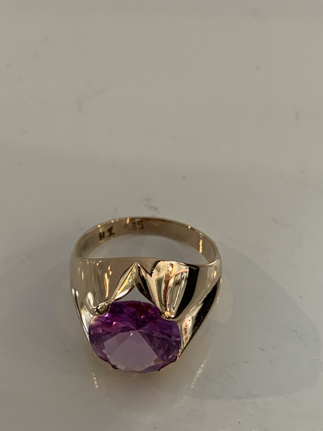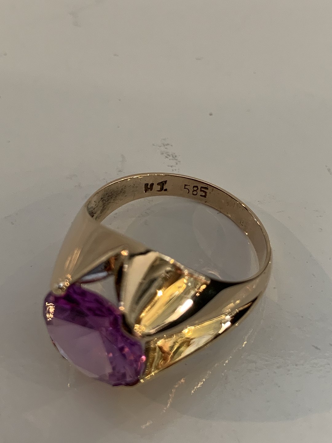 Vintage Damering med lilla sten 14 Karat Guld