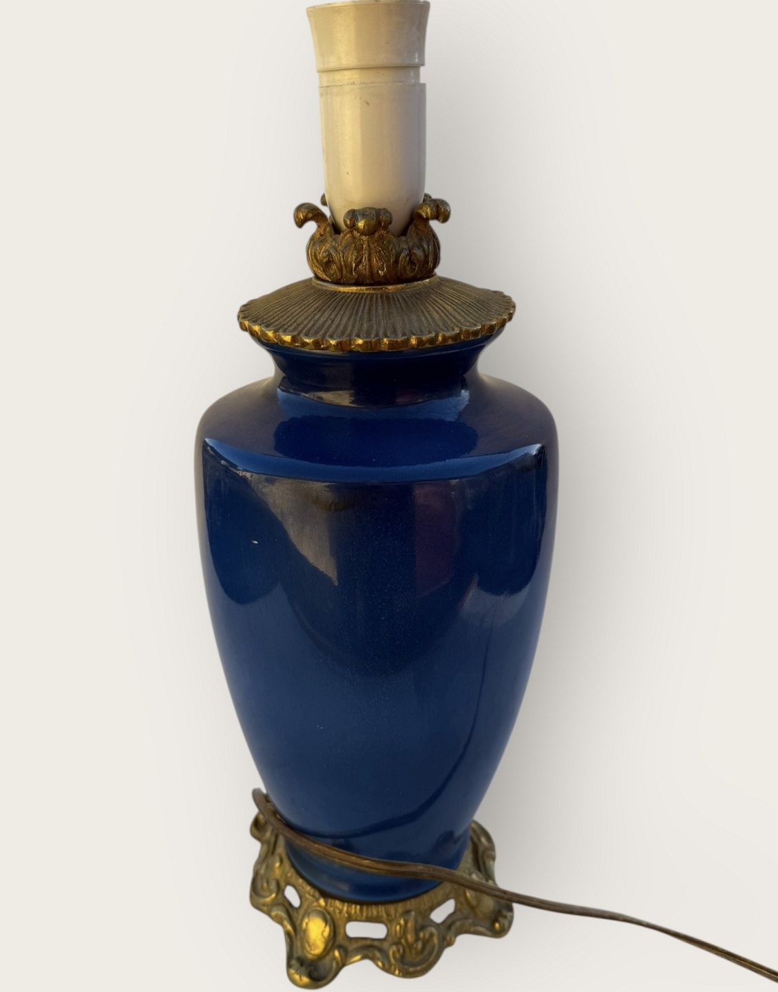 Stor bordlampe med flyvende fugl i porcelæn og messing, højde med fatning 39cm *Enkelte småkrakeleringer under glasuren (se foto) ellers flot stand