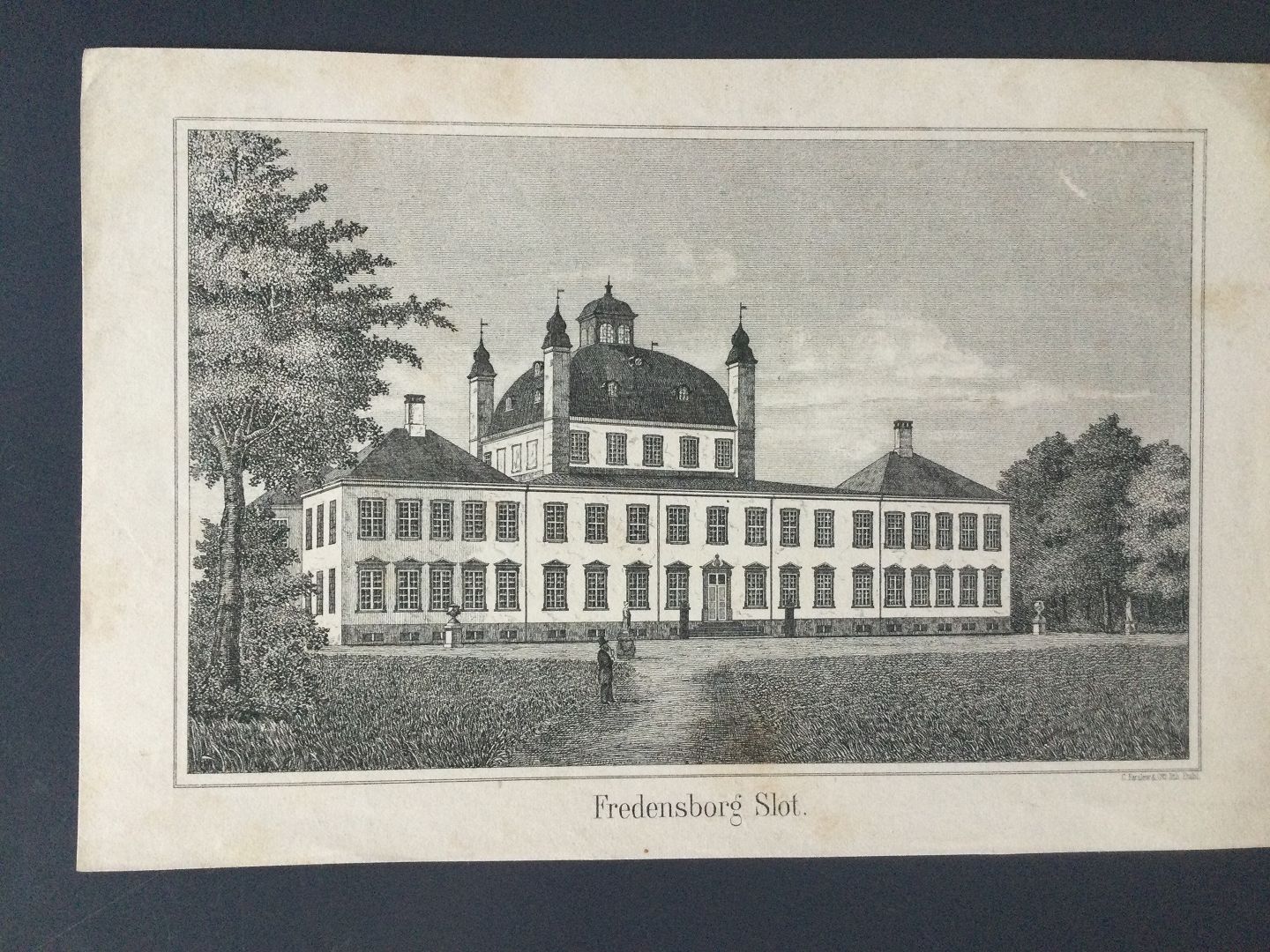 Litografi af Christian Ferslew - Fredensborg Slot set fra parken