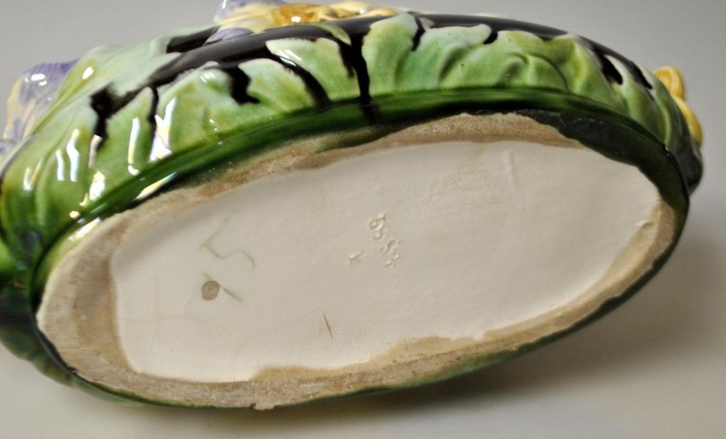 Majolica jardiniere, Tyskland, ca. 1900. Stemplet i bunden: 5853. H: 12 cm. L: 27 cm.
