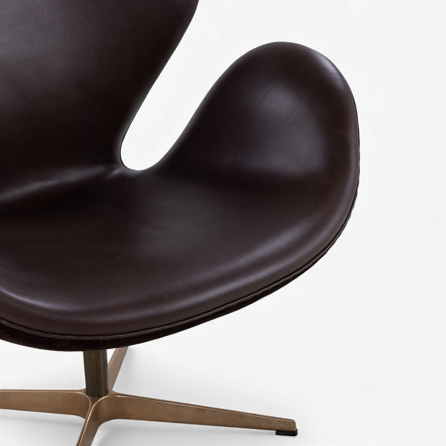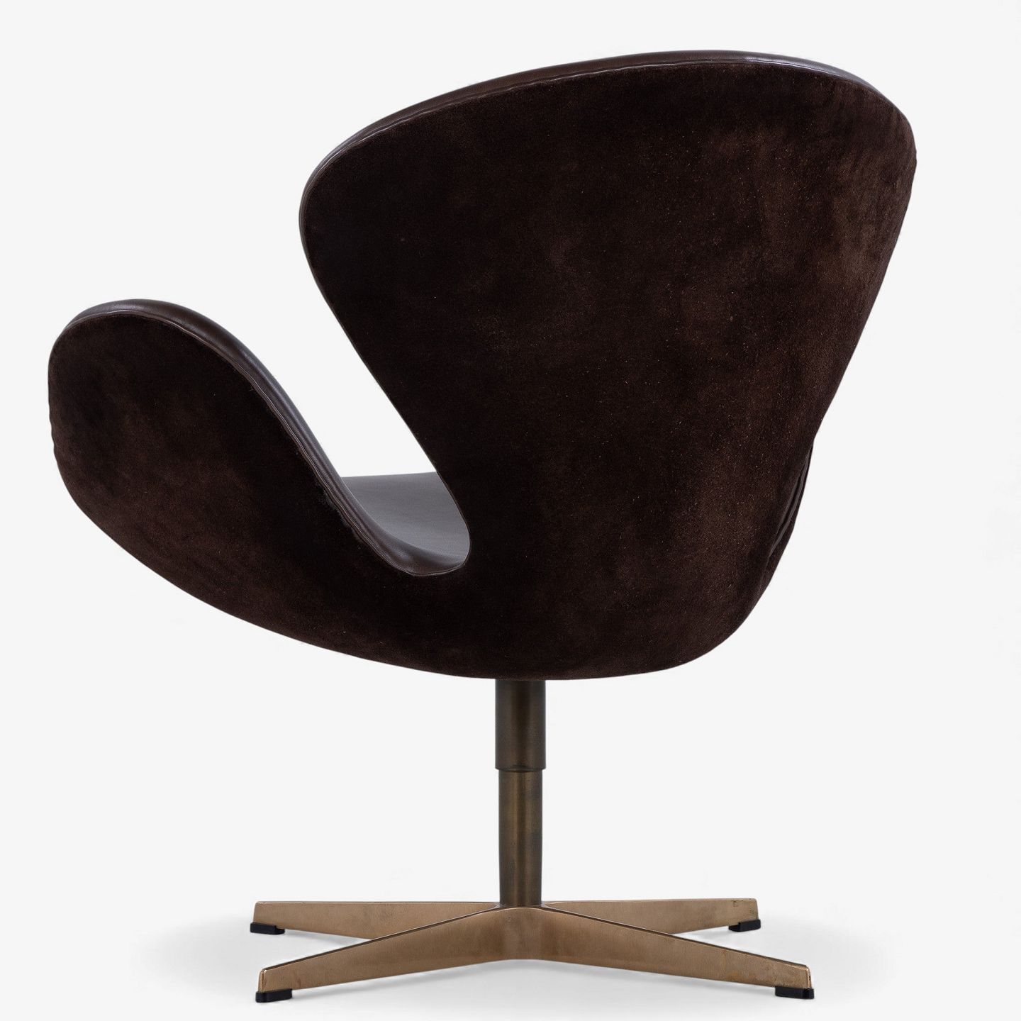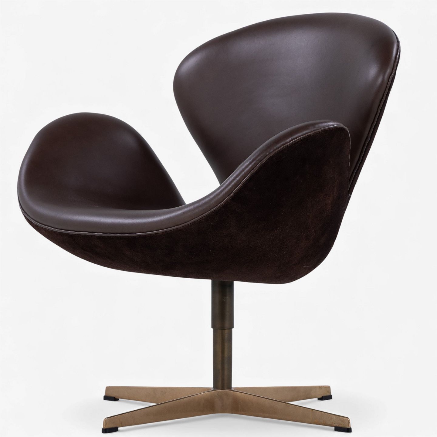 AJ 3320 - 'Svanen'-lænestol i mørkebrunt Elegance-læder og brunt ruskind på fod i bronze.