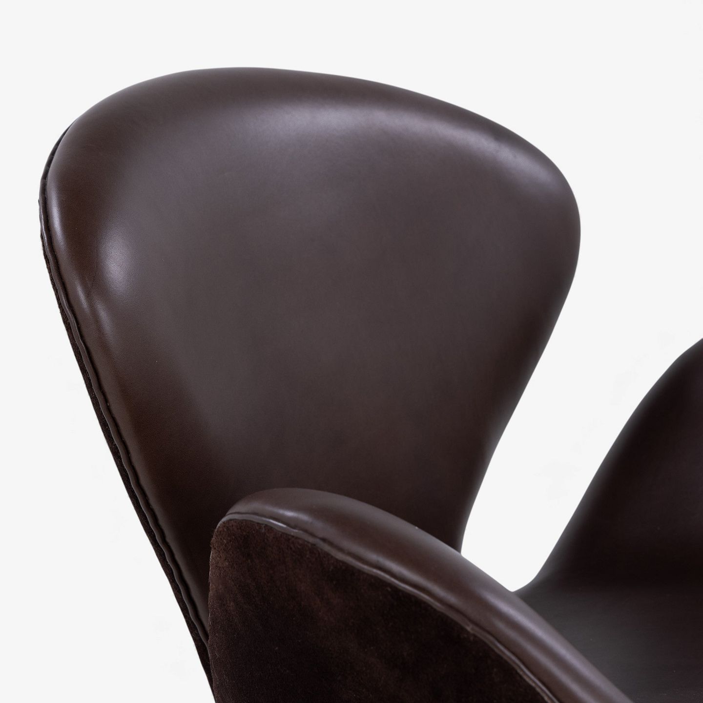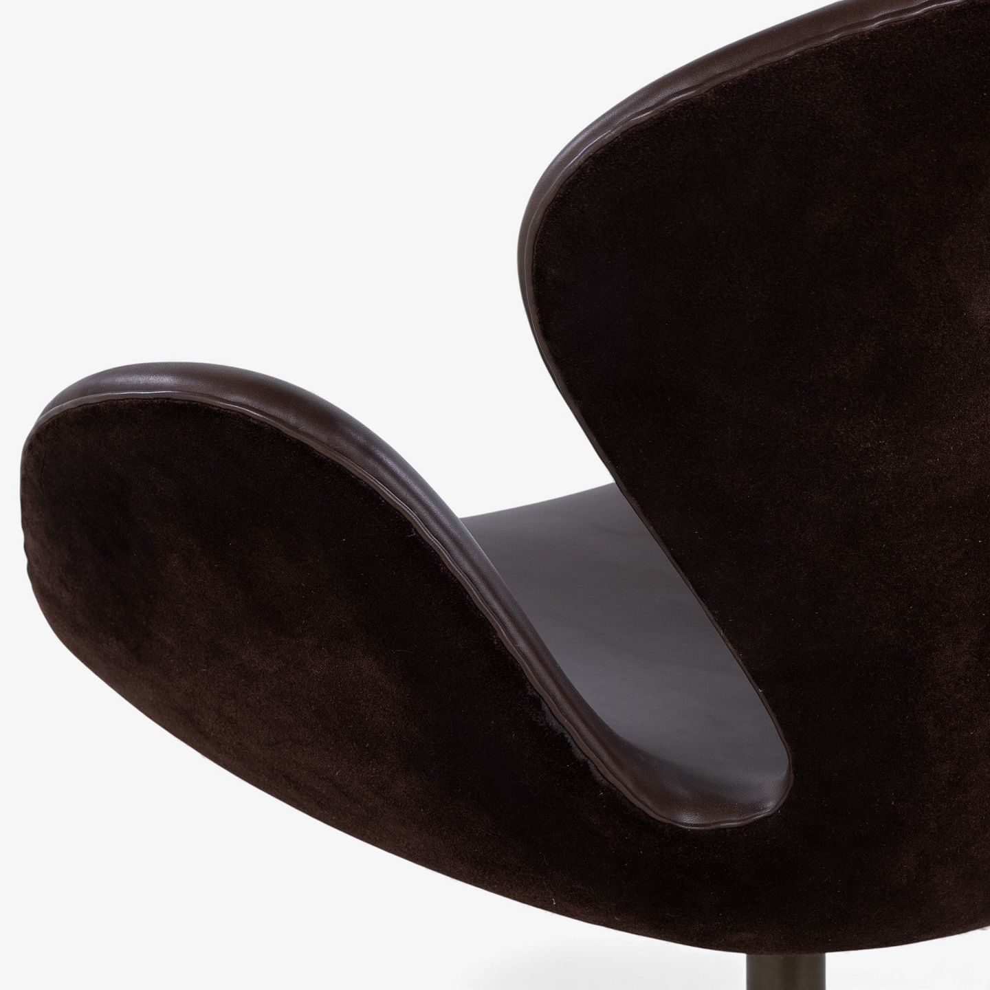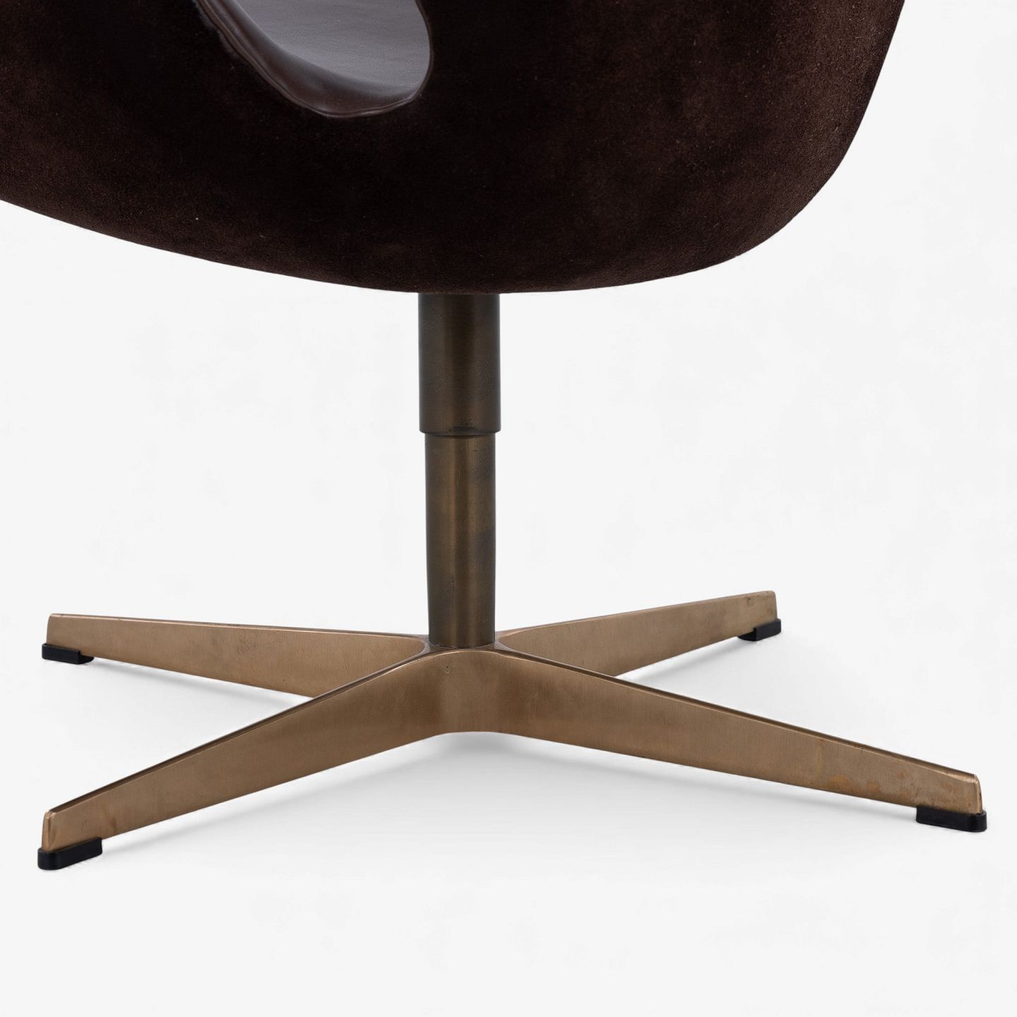 AJ 3320 - 'Svanen'-lænestol i mørkebrunt Elegance-læder og brunt ruskind på fod i bronze.