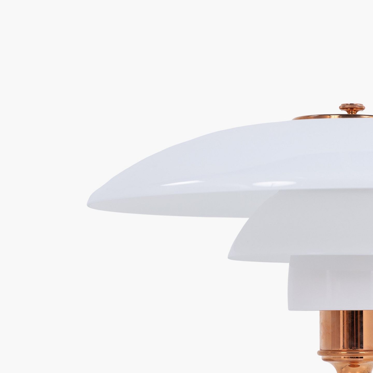 PH 3½-2½ - Bordlampe med overskærm i kobber/hvidt opalglas (begge skærme medfølger) og mellem- samt underskærm i hvidt opalglas. Jubilæumsudgave. Original kasse medfølger med certifikat.
