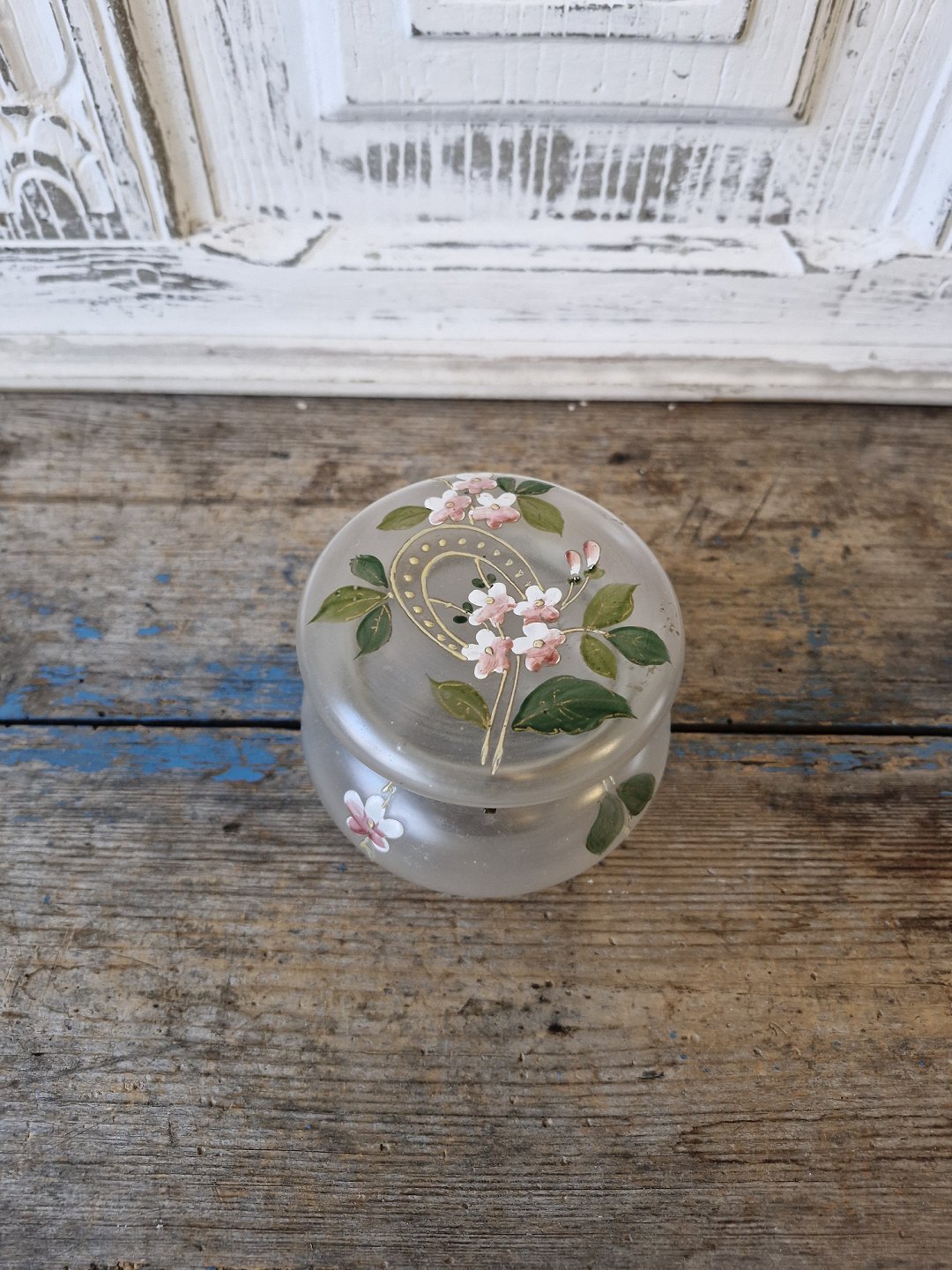 Smykkeskrin i glas med forgyldt bronze montering.