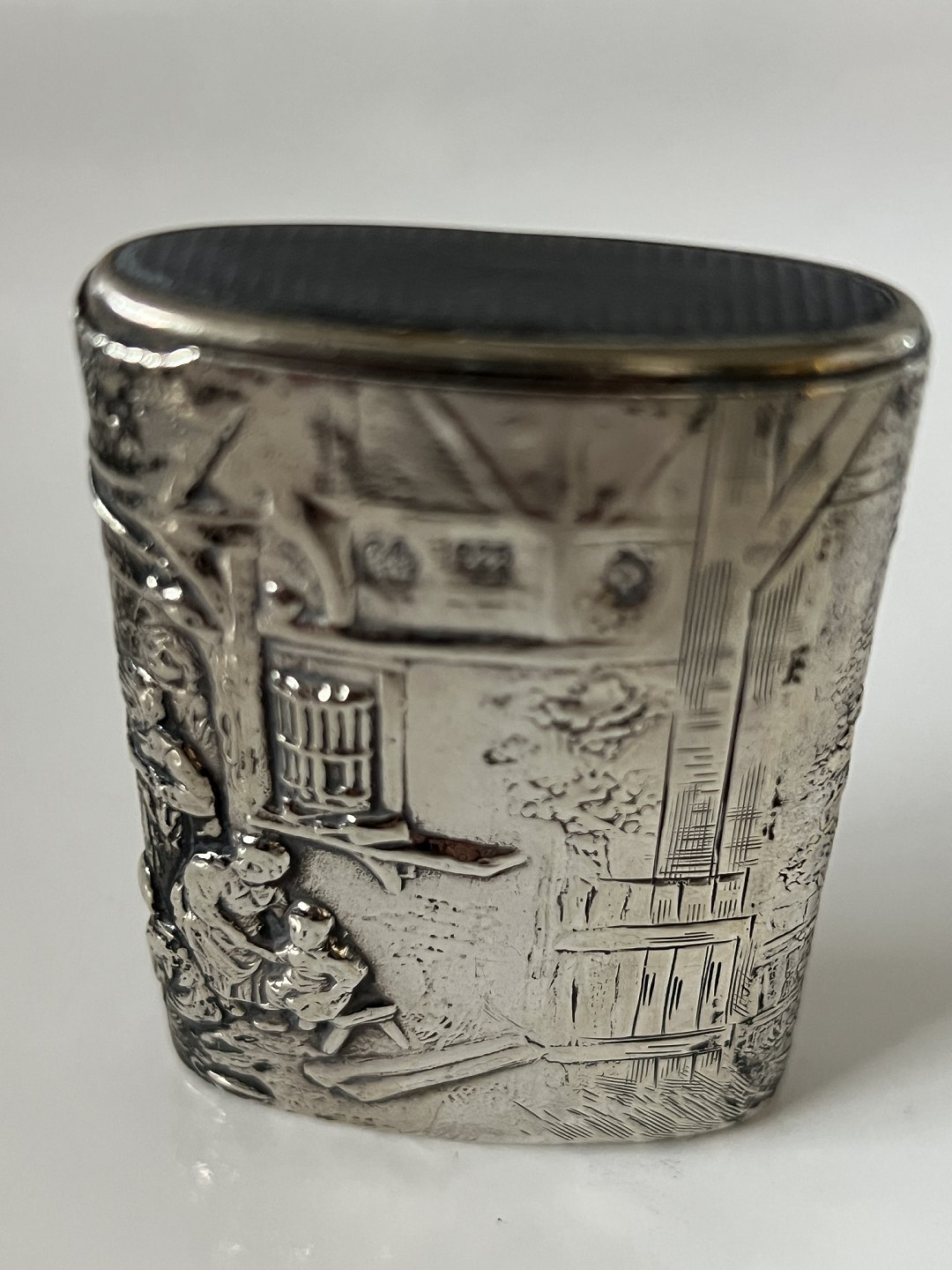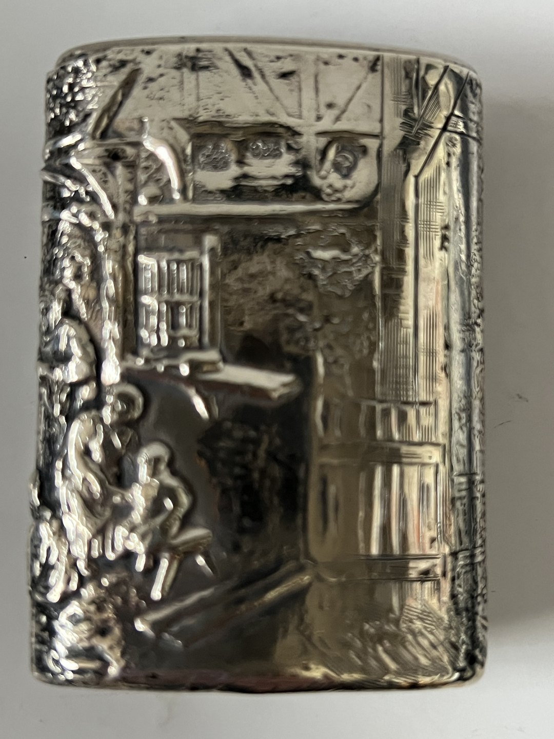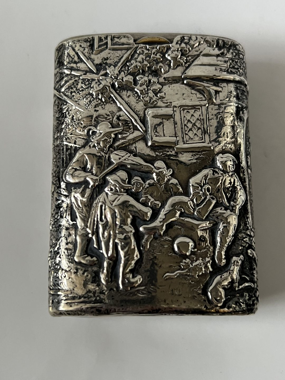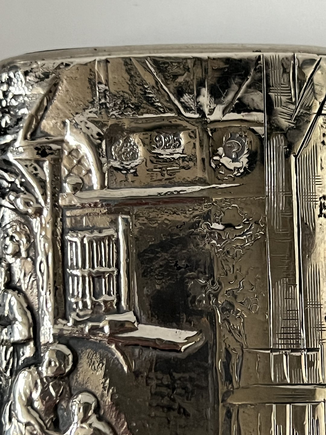 Sølvæske i sterlingsølv med flot motiv. Stemplet 925.