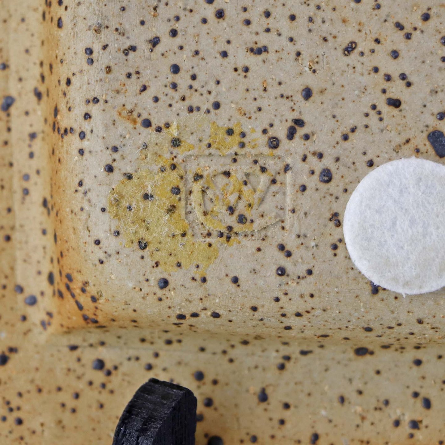 Lille oval skål i keramik med lysblå glasur på indersiden samt delvist glaseret sol mønster på ydersiden.