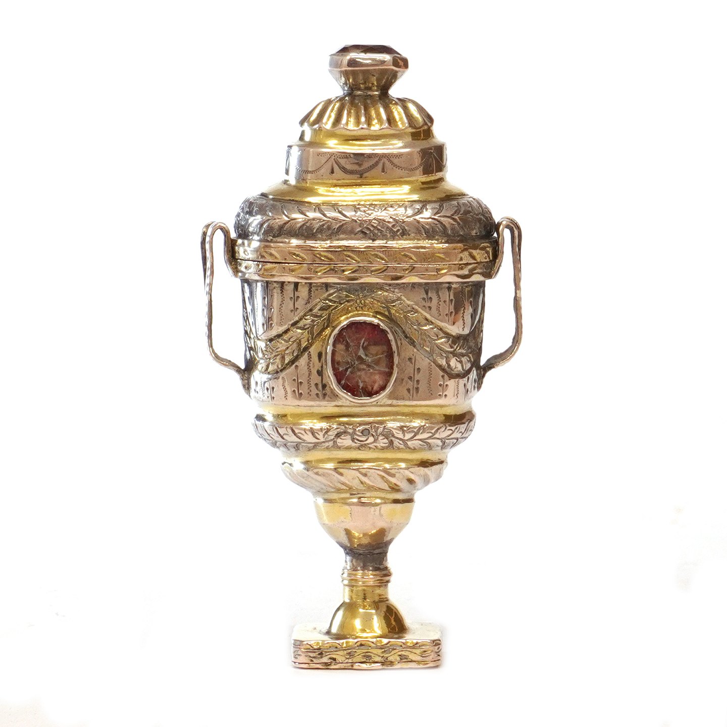 Delvist forgyldt hovedvandsæg med flusser. Ustemplet. Sandsynligvis Sønderjylland ca. år 1820. H: 8,9cm