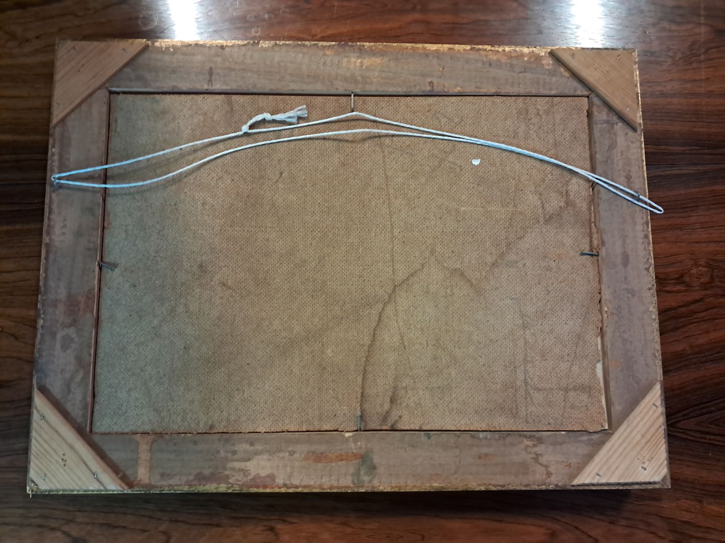Maleri af Dragør Havn i guldmalet ramme, af : Mogens Amdi Thorsen (1924-2016)