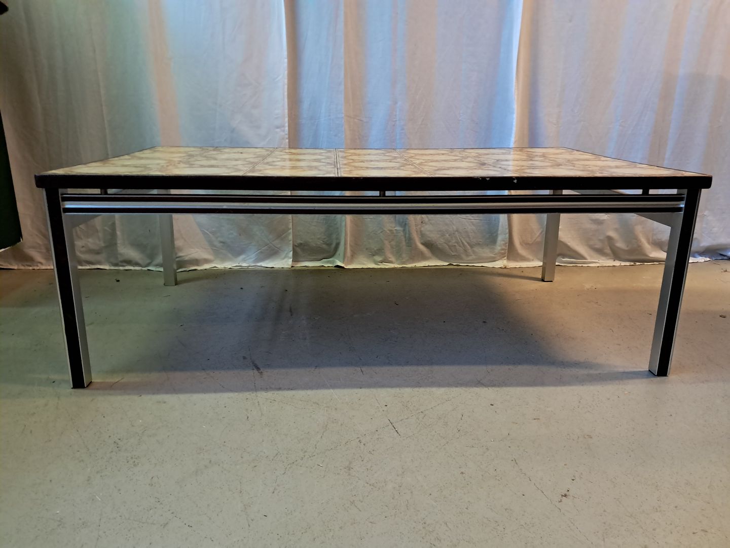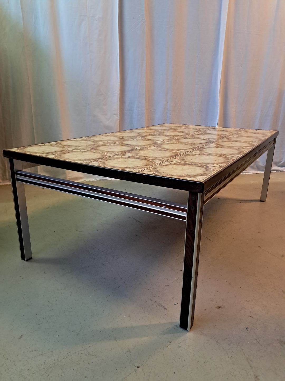 Sofabord i fineret palisander og metal med kakler, fra 1960erne.