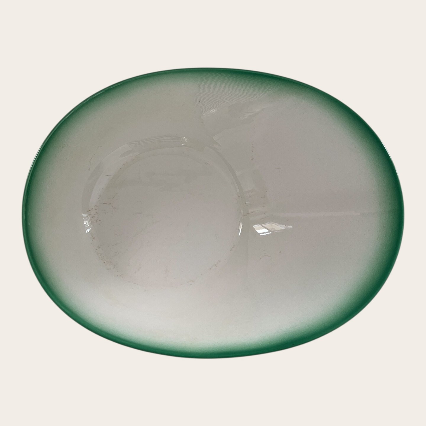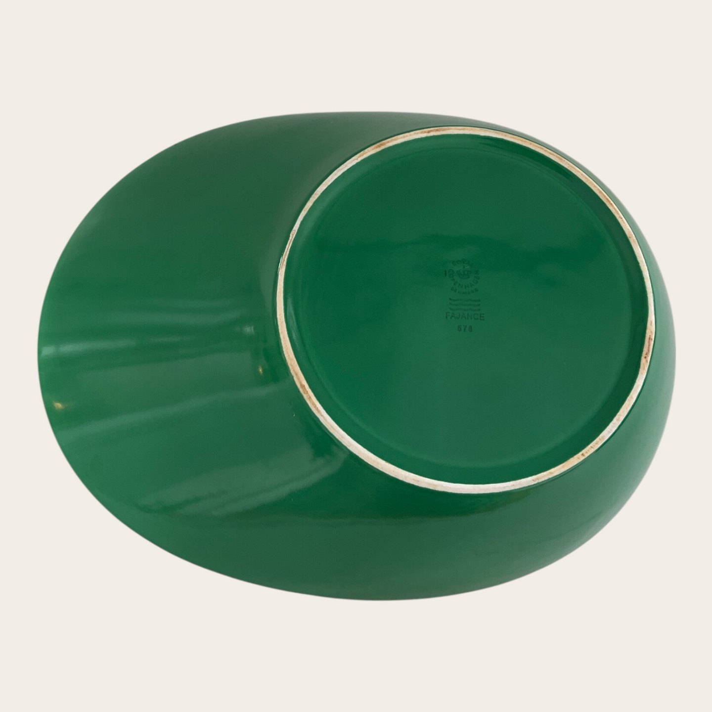 Royal Copenhagen, Aluminia, Ursula, Asymmetrisk skål, Grøn / hvid, 1. sortering, 30,5cm lang, 24cm bred, 8cm høj, Design Ursula Munch Petersen *Med brugsspor*
